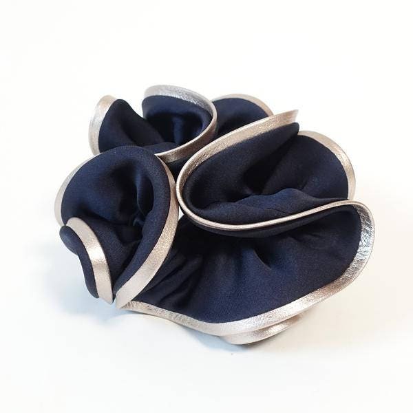 veryshine.com Scrunchies Navy artificial leather trim satin scrunchies