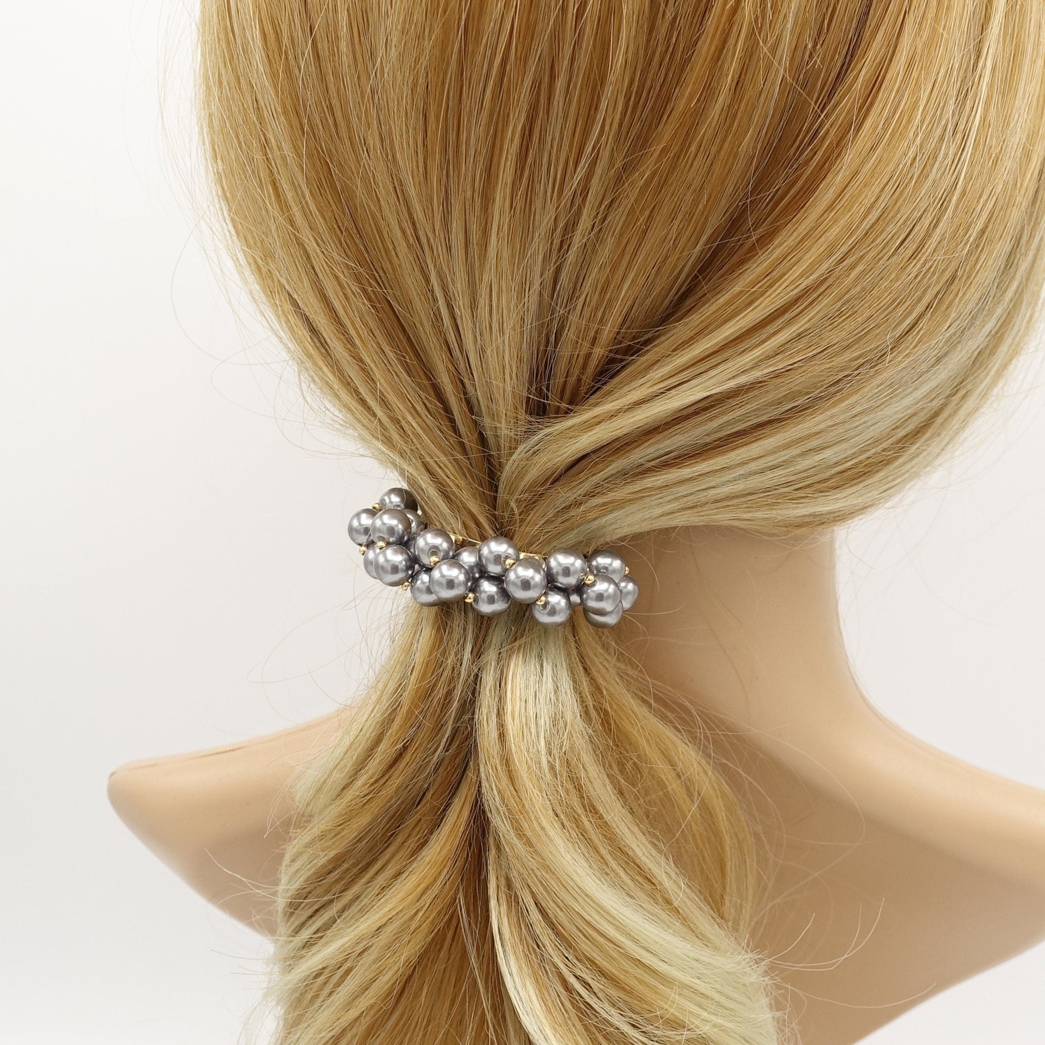 veryshine.com Hair Clip Gray pearl half moon ponytail barrette clip  hair accessory