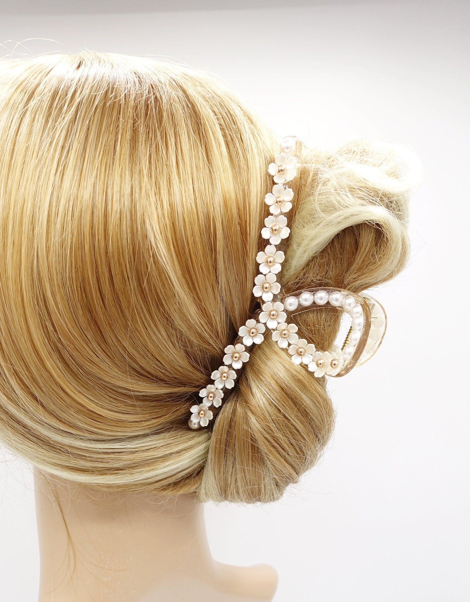 veryshine.com Hair Claw Triple loop pearl flower claw, pearl hair claw, elegant hair claw for women