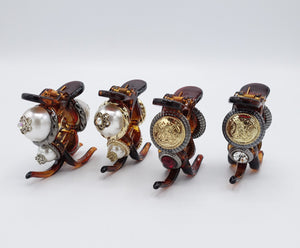 embellished with pearls, antique-style buttons, or Czech rhinestones