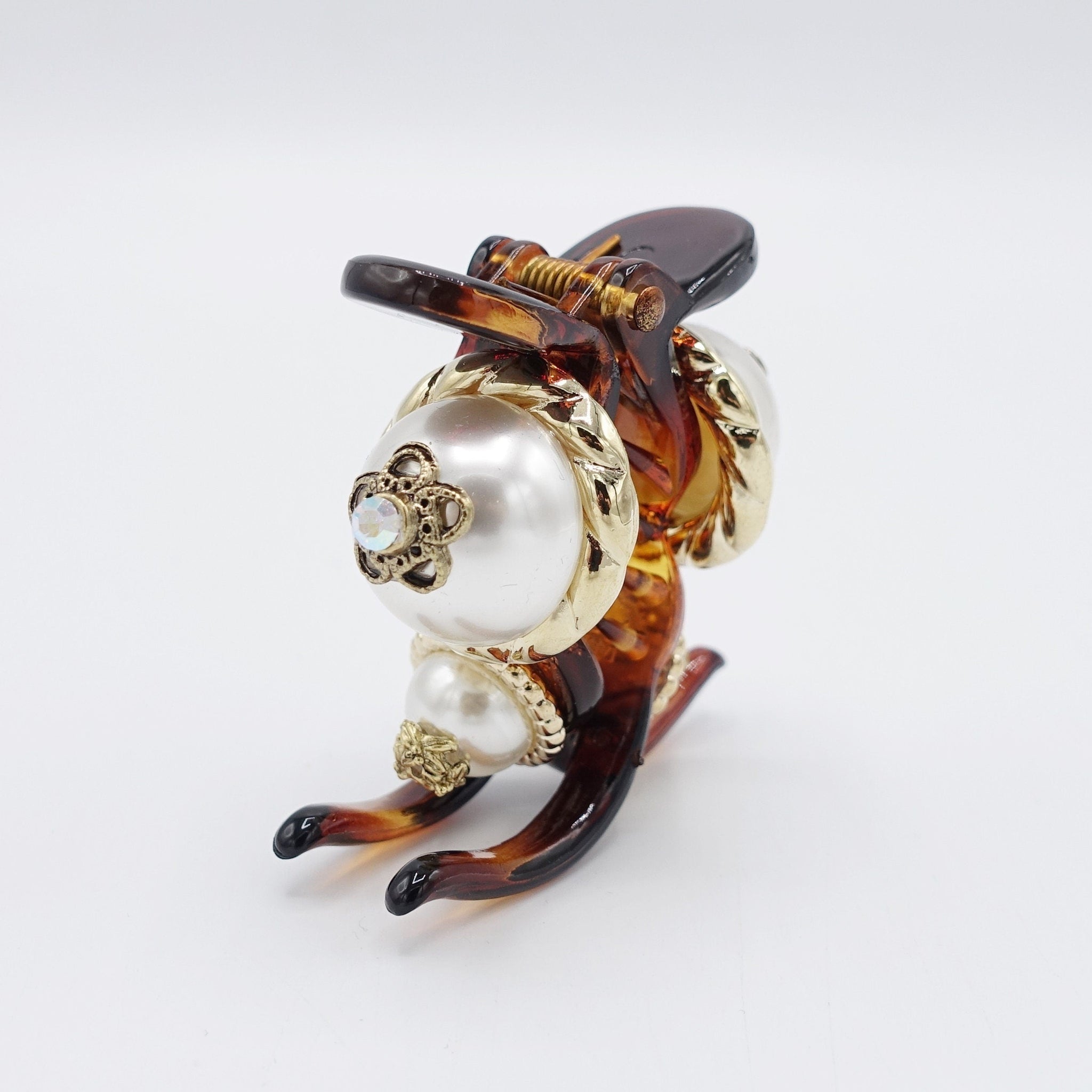 veryshine.com Hair Clip Golden petal pearl antique button hair claw, 3 prong hair claw, pearl button hair claw clip for women