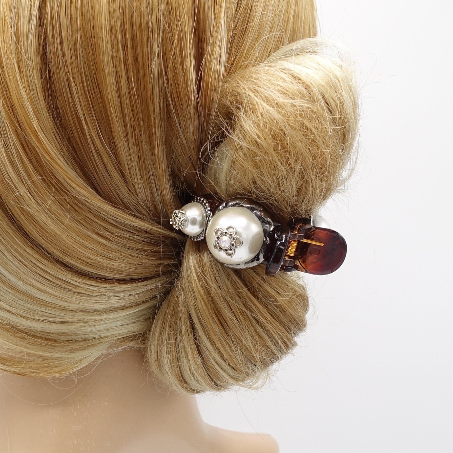 Antique Button Hair Claw: Pearl & Rhinestone Embellished Clip – veryshine.com