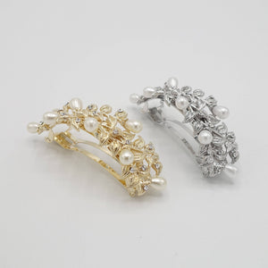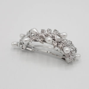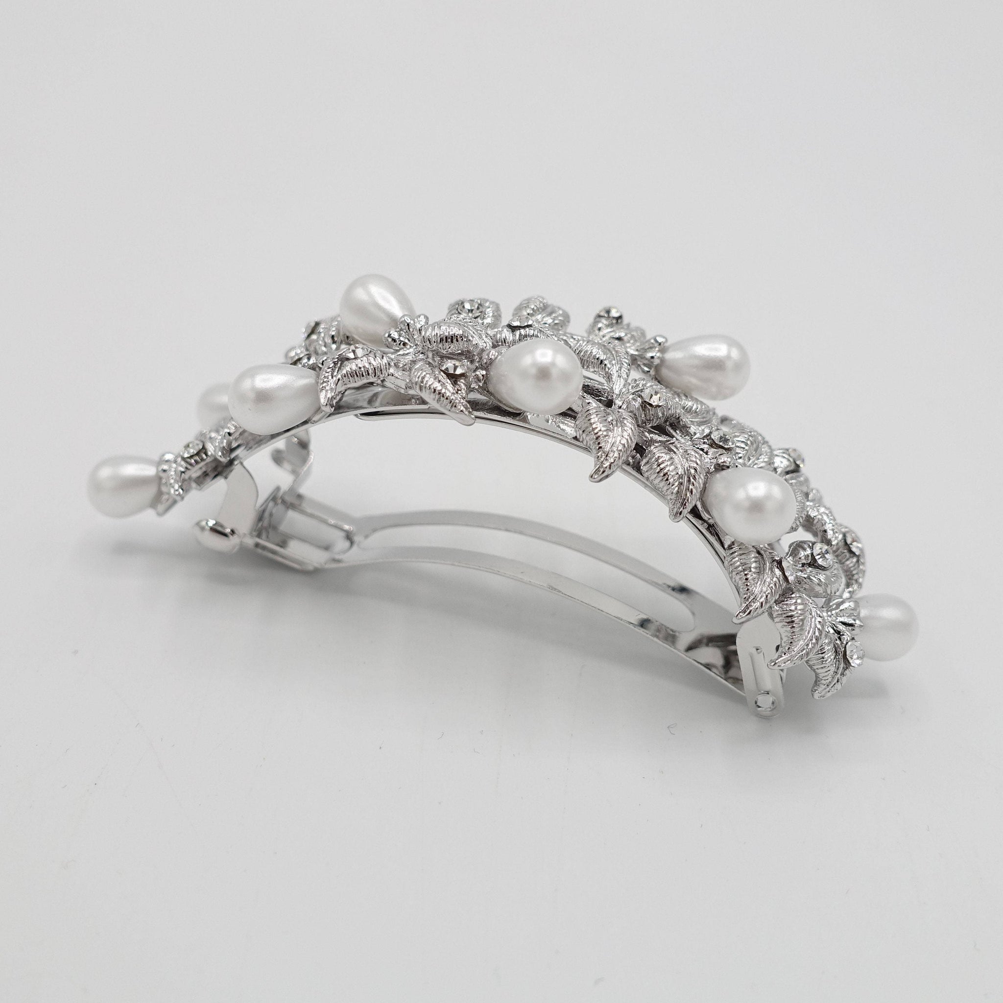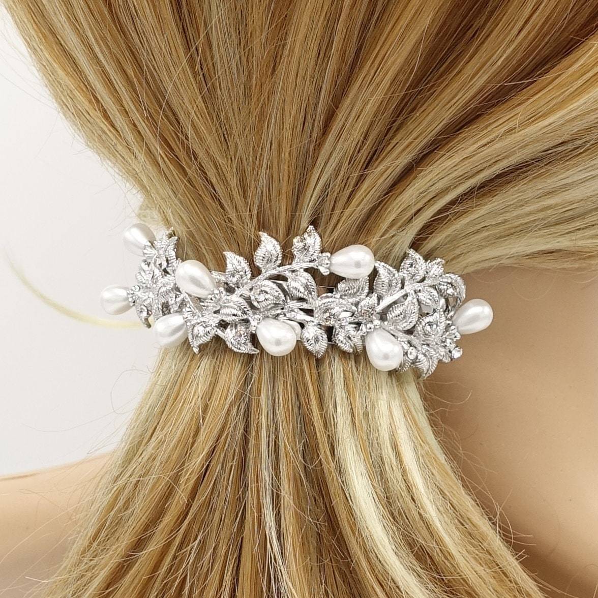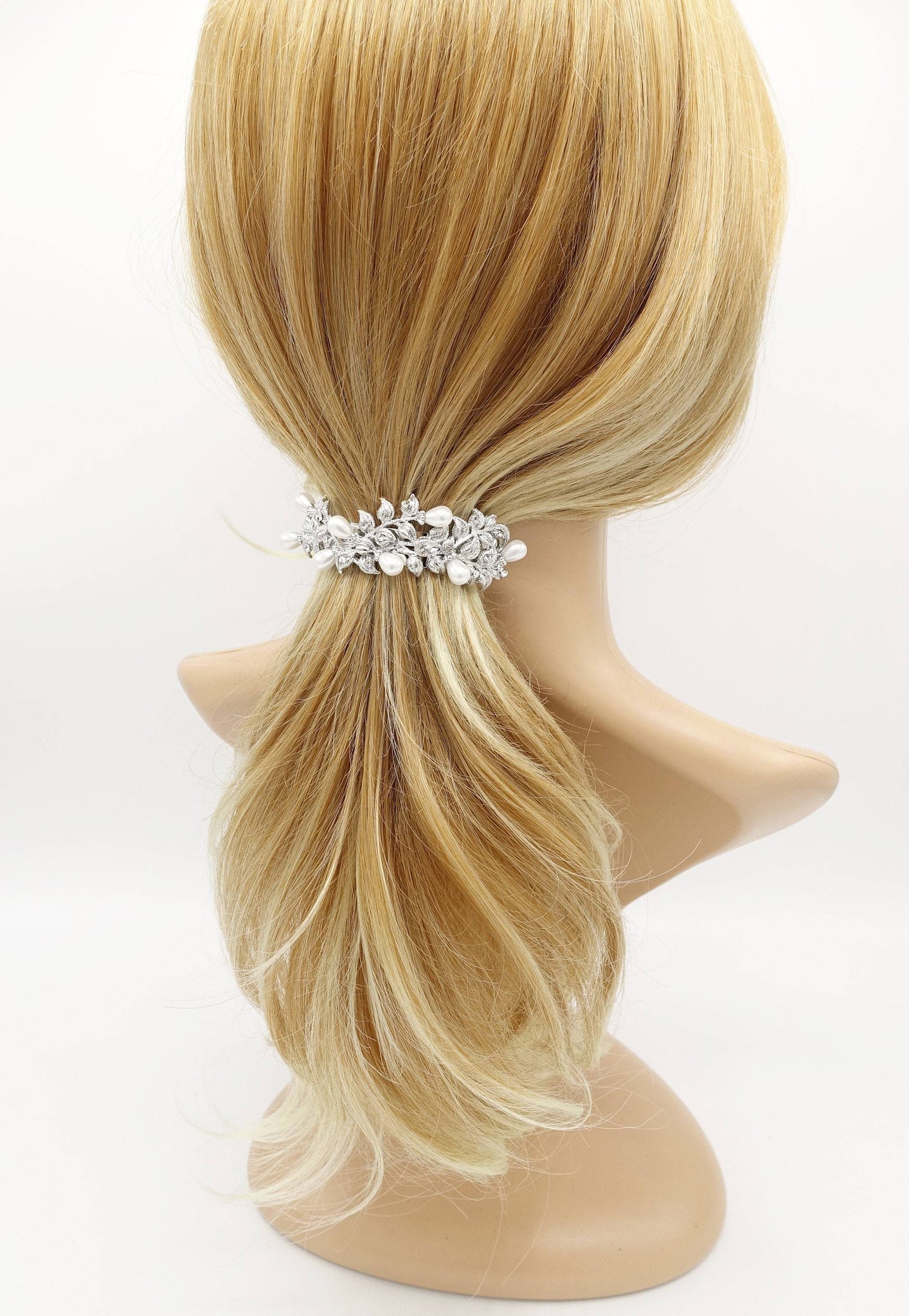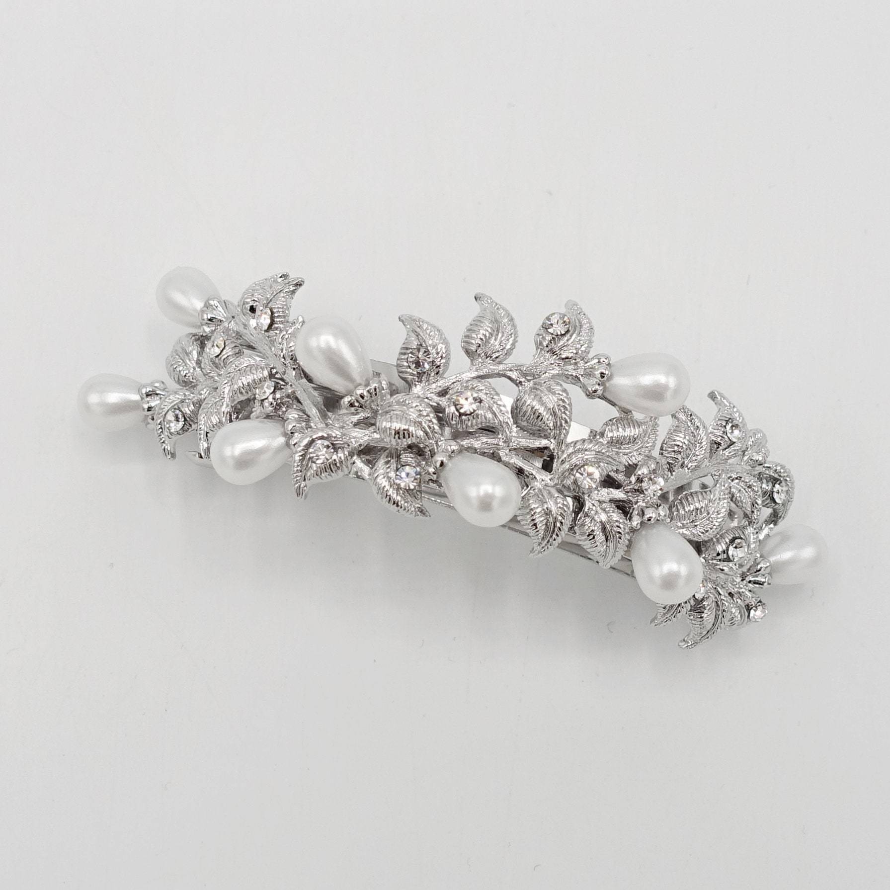 VeryShine claw/banana/barrette Silver bridal hair barrette pearl rhinestone hair barrette flower stem wedding hair accessory
