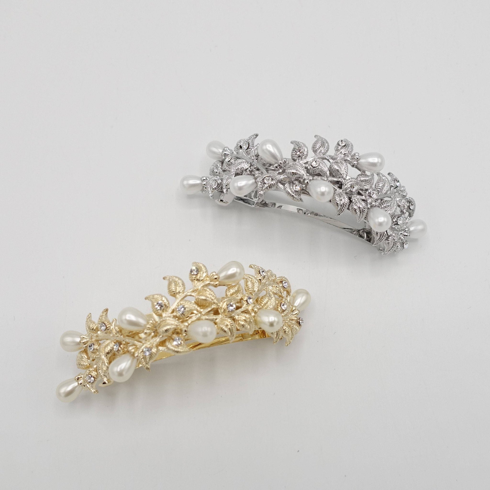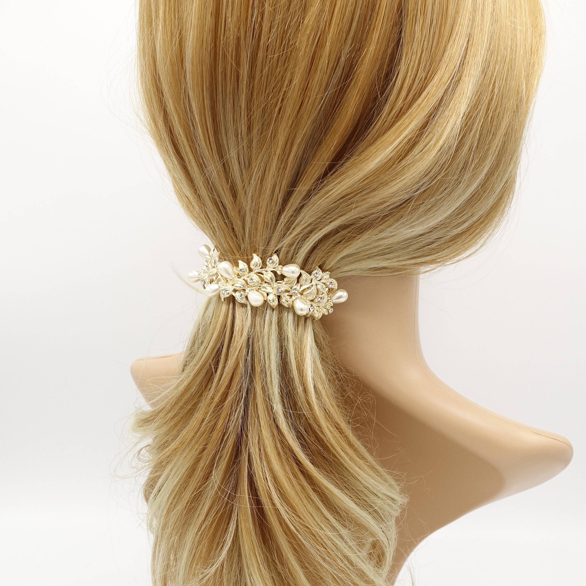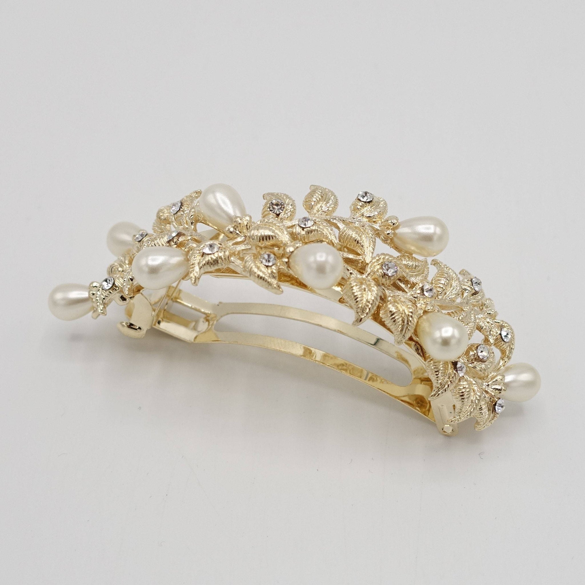 VeryShine claw/banana/barrette Gold bridal hair barrette pearl rhinestone hair barrette flower stem wedding hair accessory