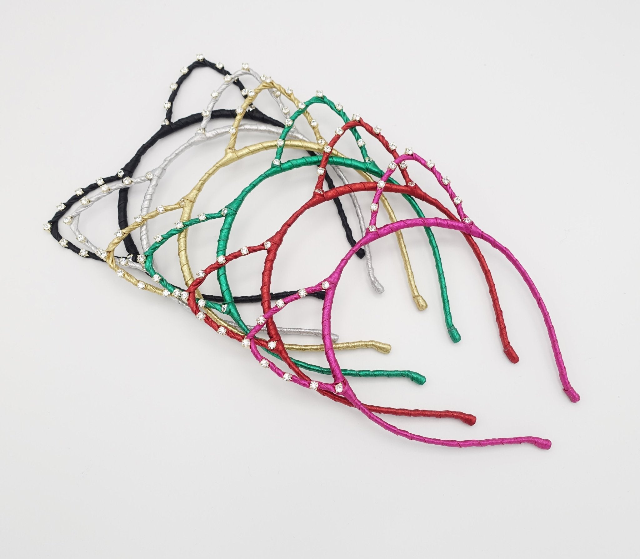 cat ear headband rhinestone embellished hairband crystal wrapping woman hair accessory