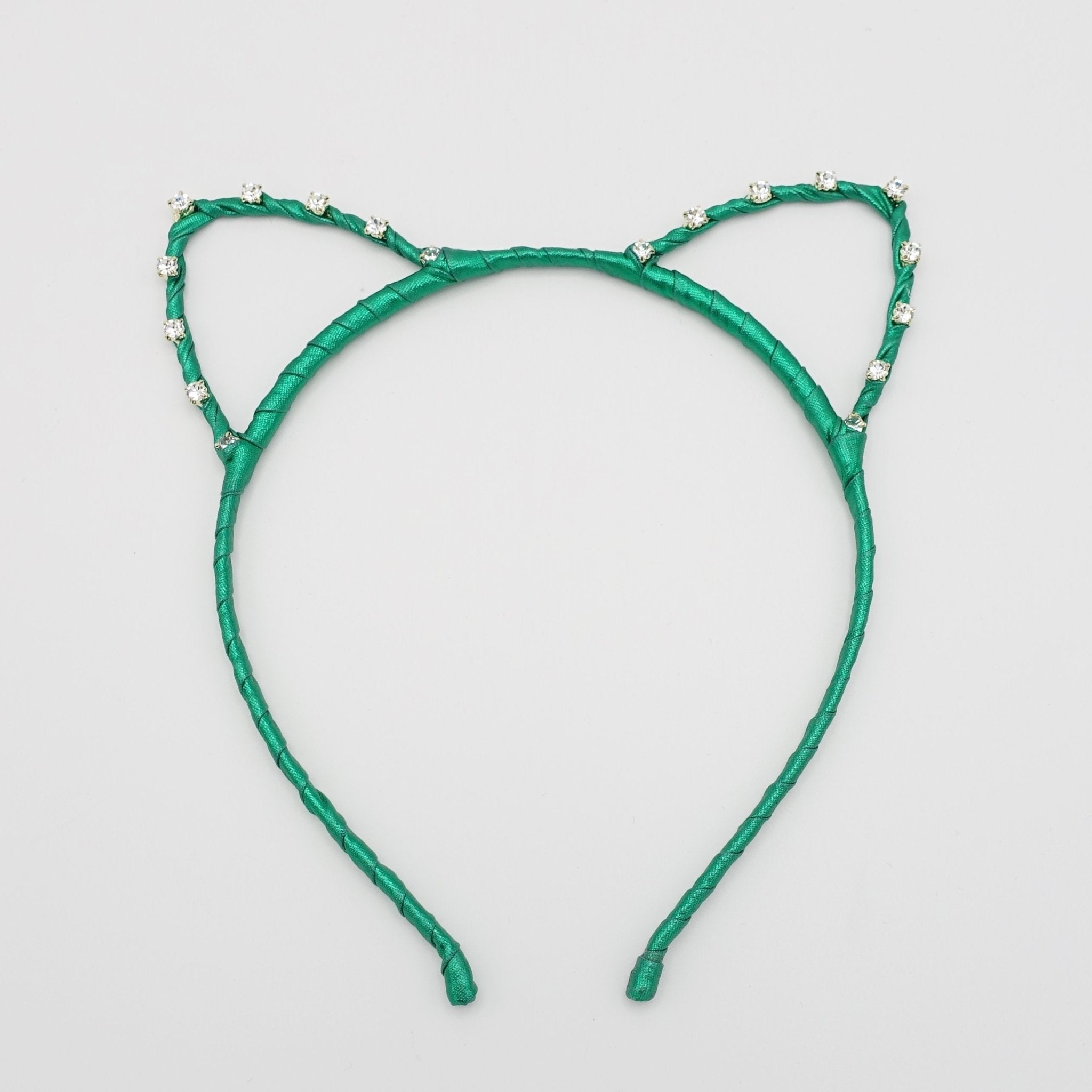 veryshine.com hairband/headband Green cat ear headband rhinestone embellished hairband crystal wrapping woman hair accessory