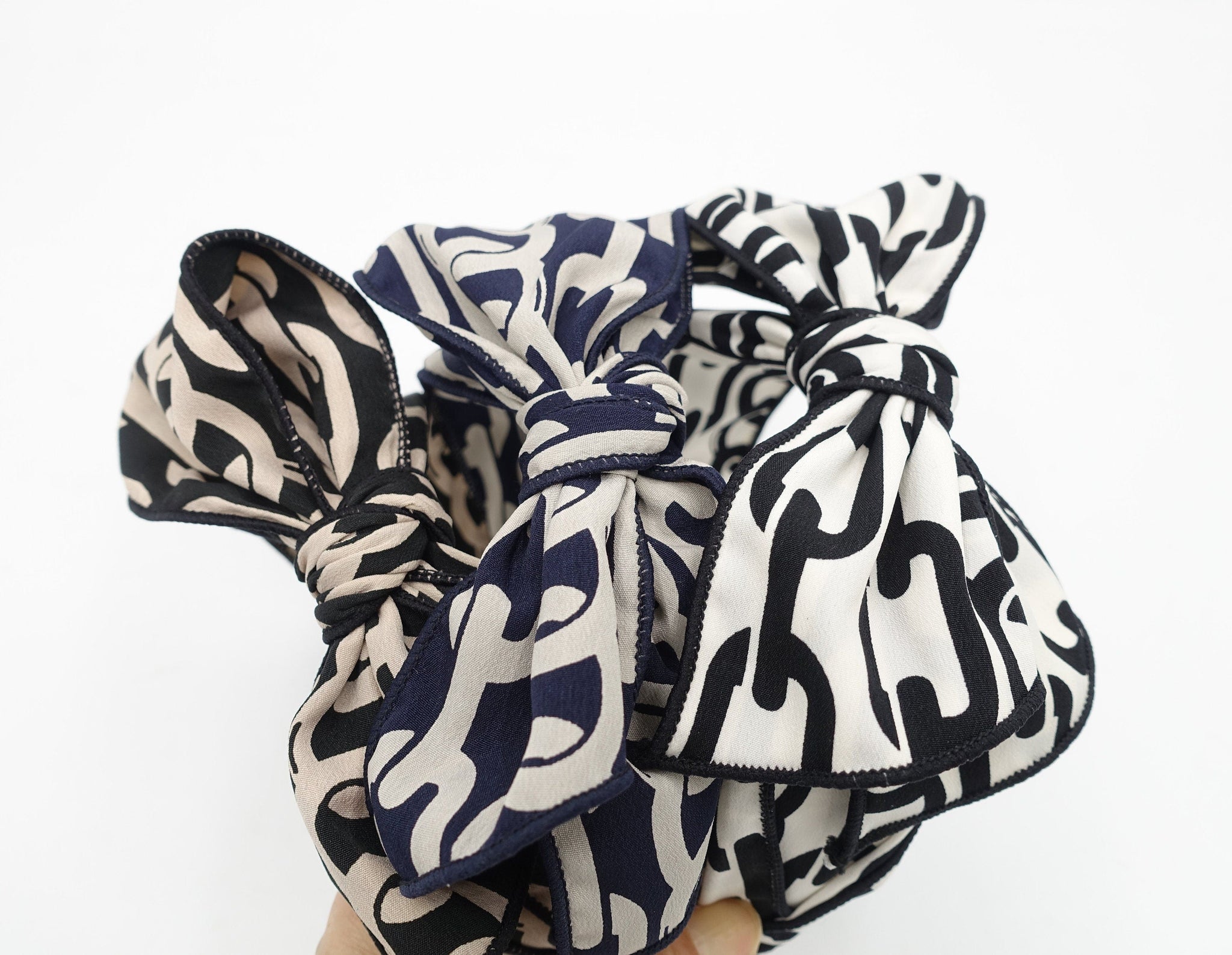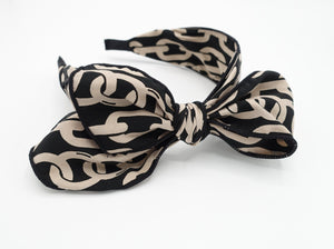 chain print headband bow knotted hairband women hair accessory