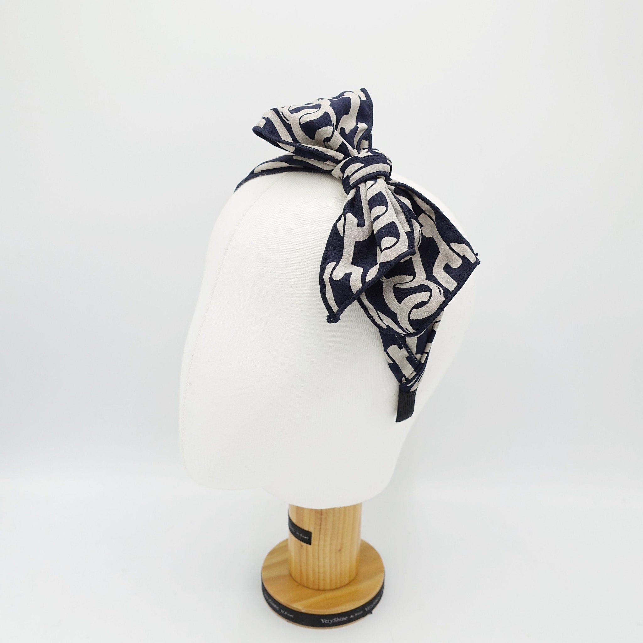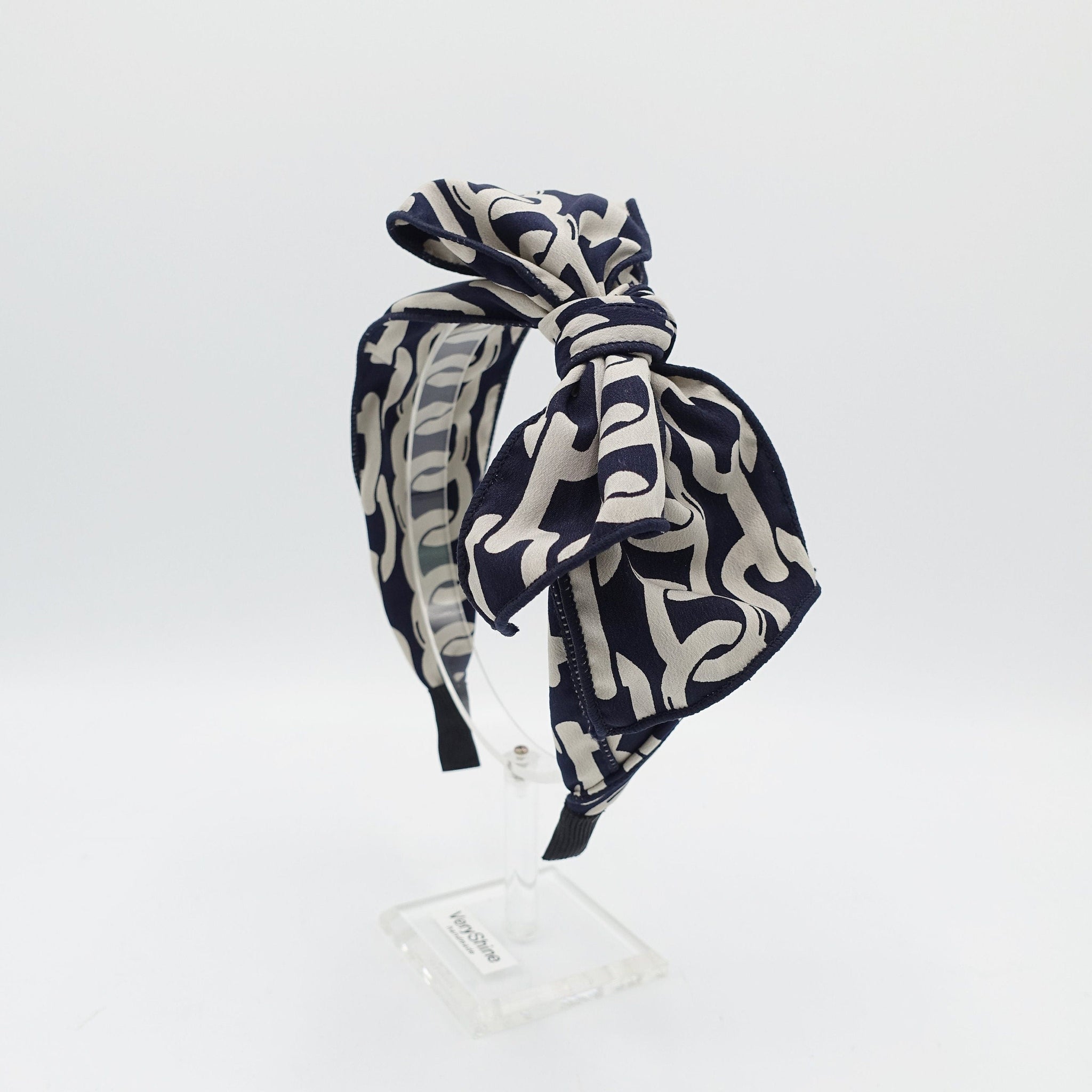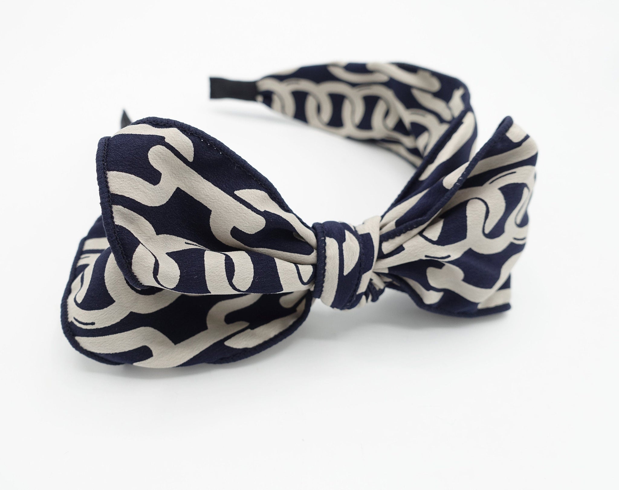 veryshine.com Headband Navy chain print headband bow knotted hairband women hair accessory