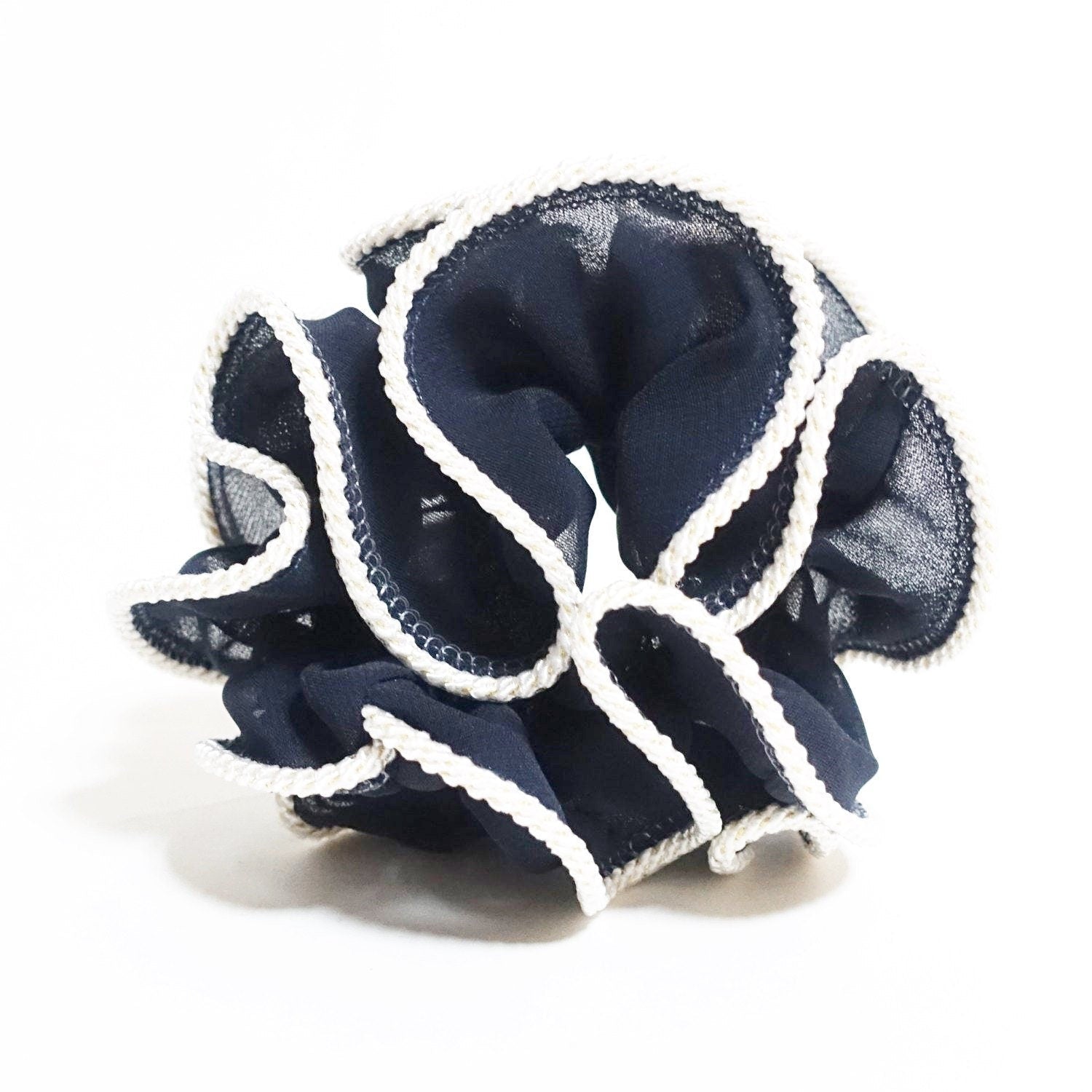 veryshine.com Scrunchies Navy Chiffon Scrunchie Thread Trim Hair scrunchy Women Hair Tie Accessory scrunchies