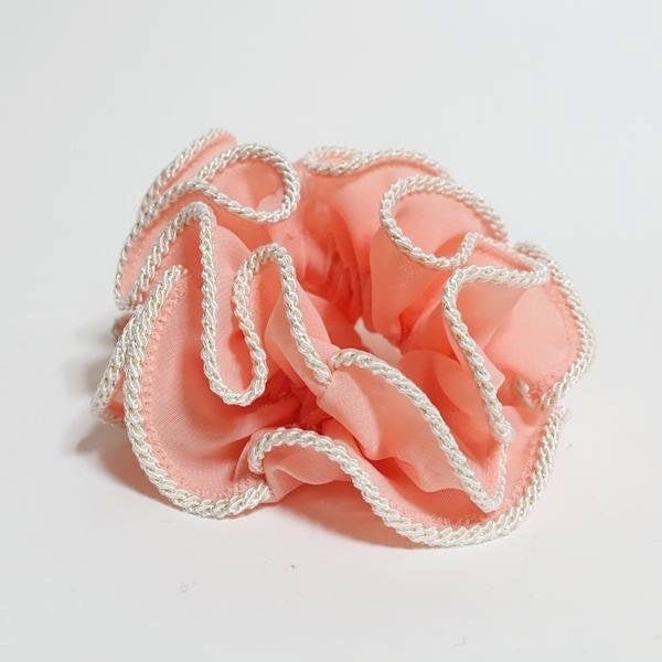 veryshine.com Scrunchies Peach Chiffon Scrunchie Thread Trim Hair scrunchy Women Hair Tie Accessory scrunchies