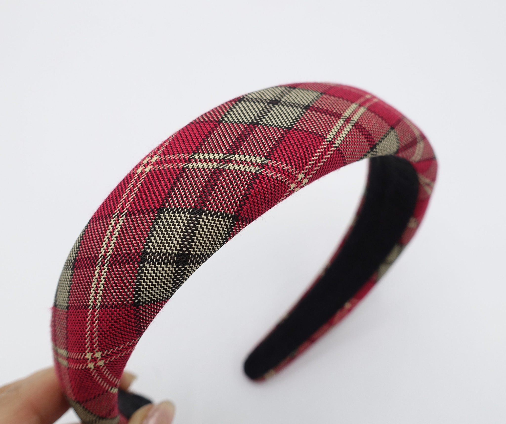 veryshine.com Headband Red wine plaid headband padded hairband shop for women