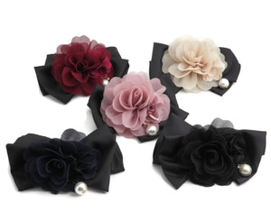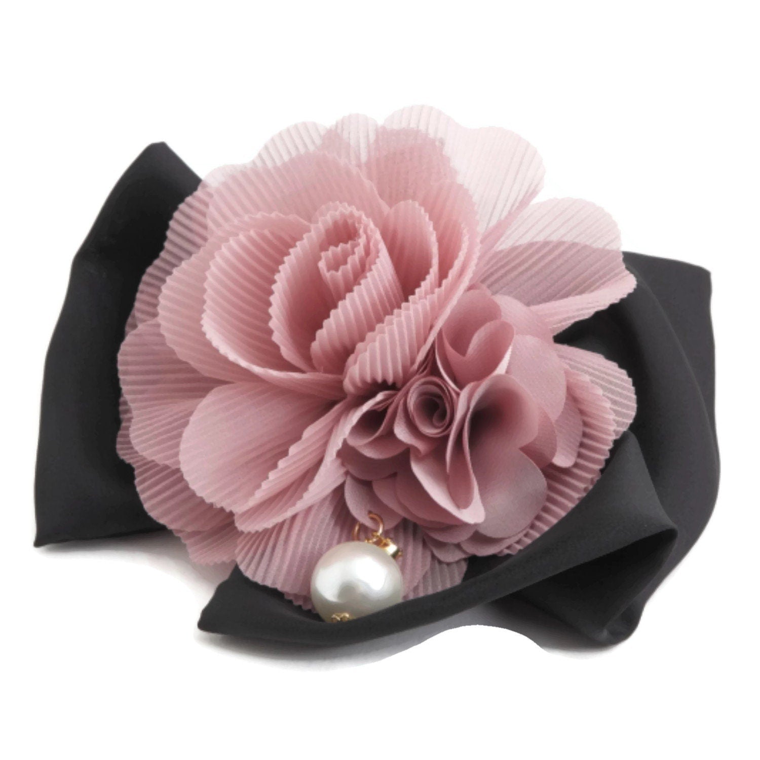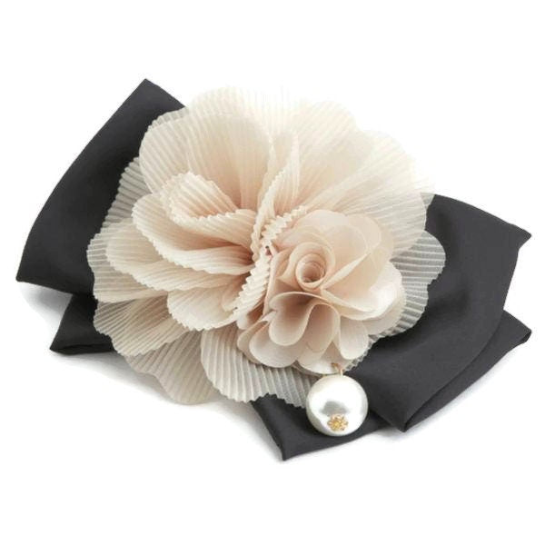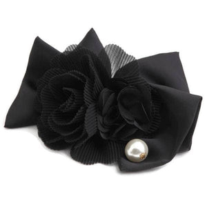 Pleated Flower French Barrette: Black Bow Hair Accessory