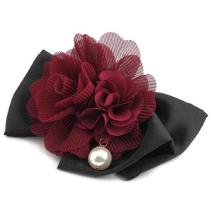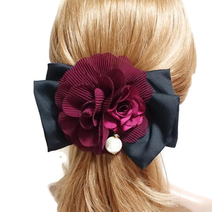 veryshine.com Barrette (Bow) Burgundy Pleat flower french barrette  black bow french hair barrette elegant woman hair accessories