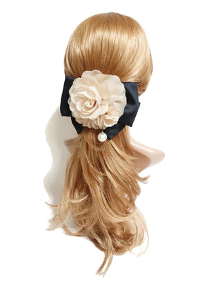 Pleat flower French barrette black bow French hair barrette – veryshine.com