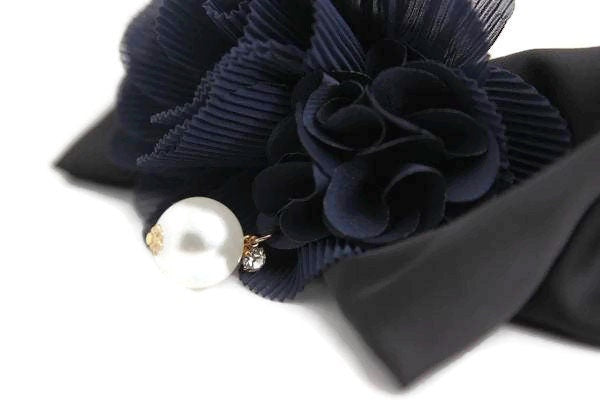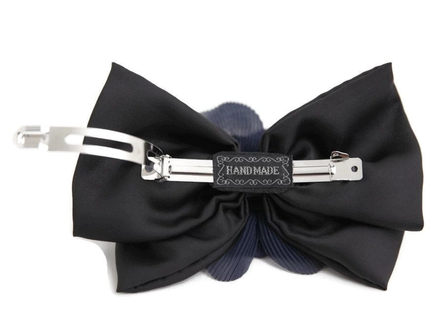 veryshine.com Barrette (Bow) Navy Pleat flower french barrette  black bow french hair barrette elegant woman hair accessories