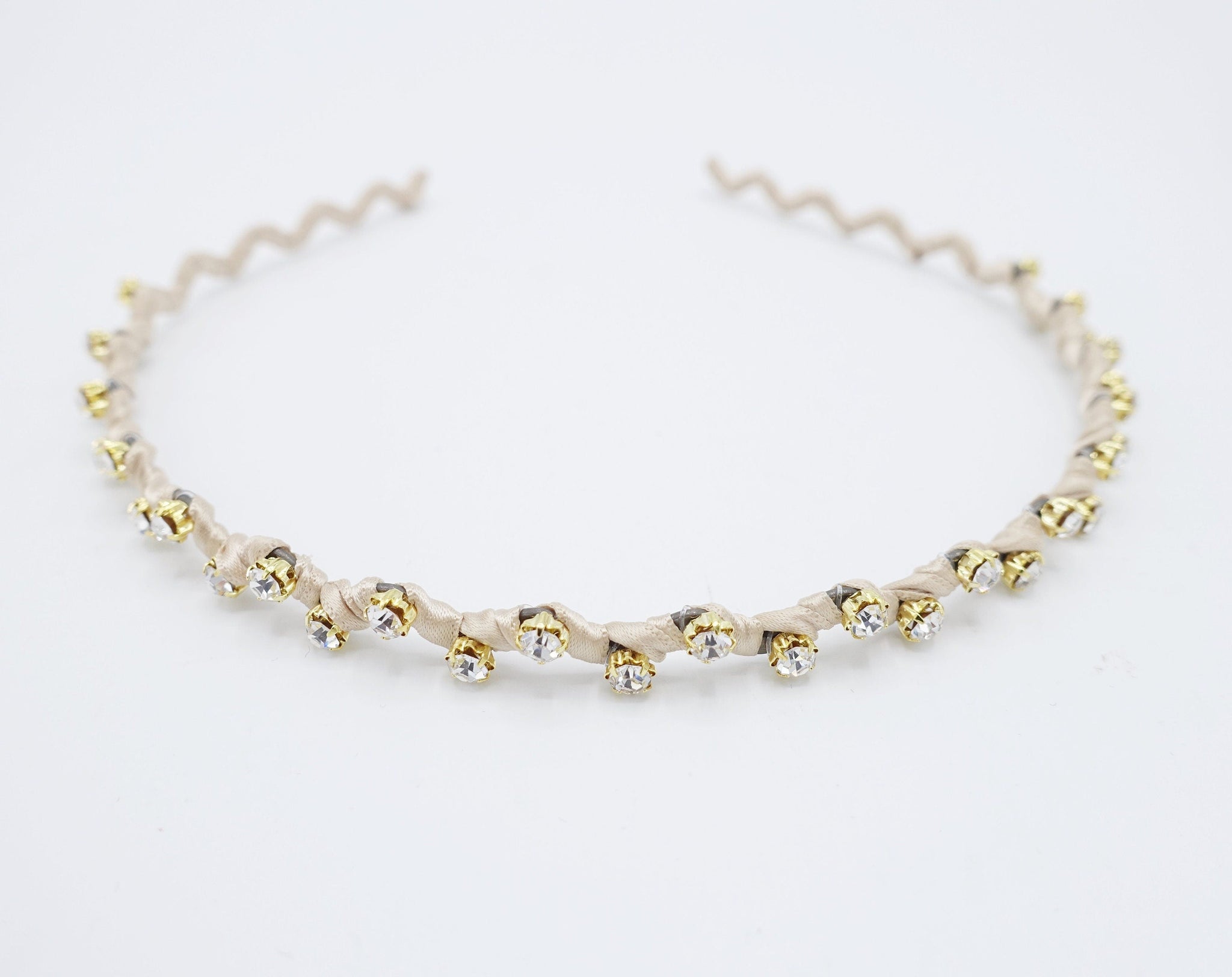 veryshine.com Headband Beige crystal rhinestone embellished wave satin wrap headband thin hairband women hair accessory