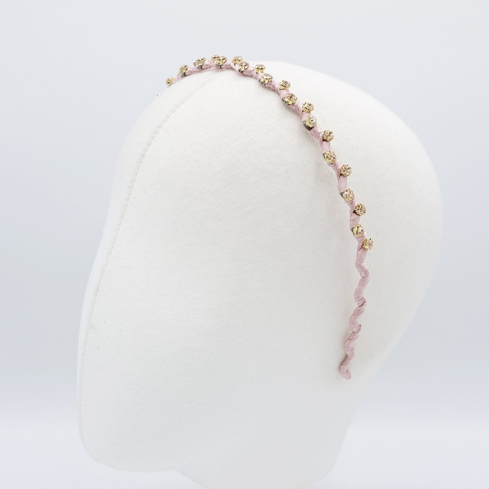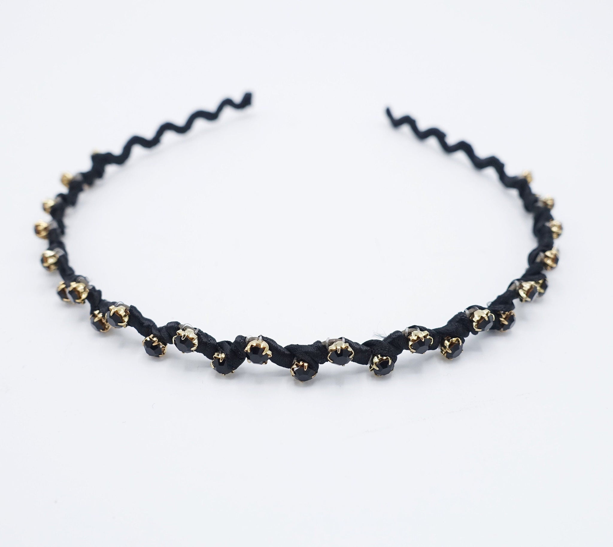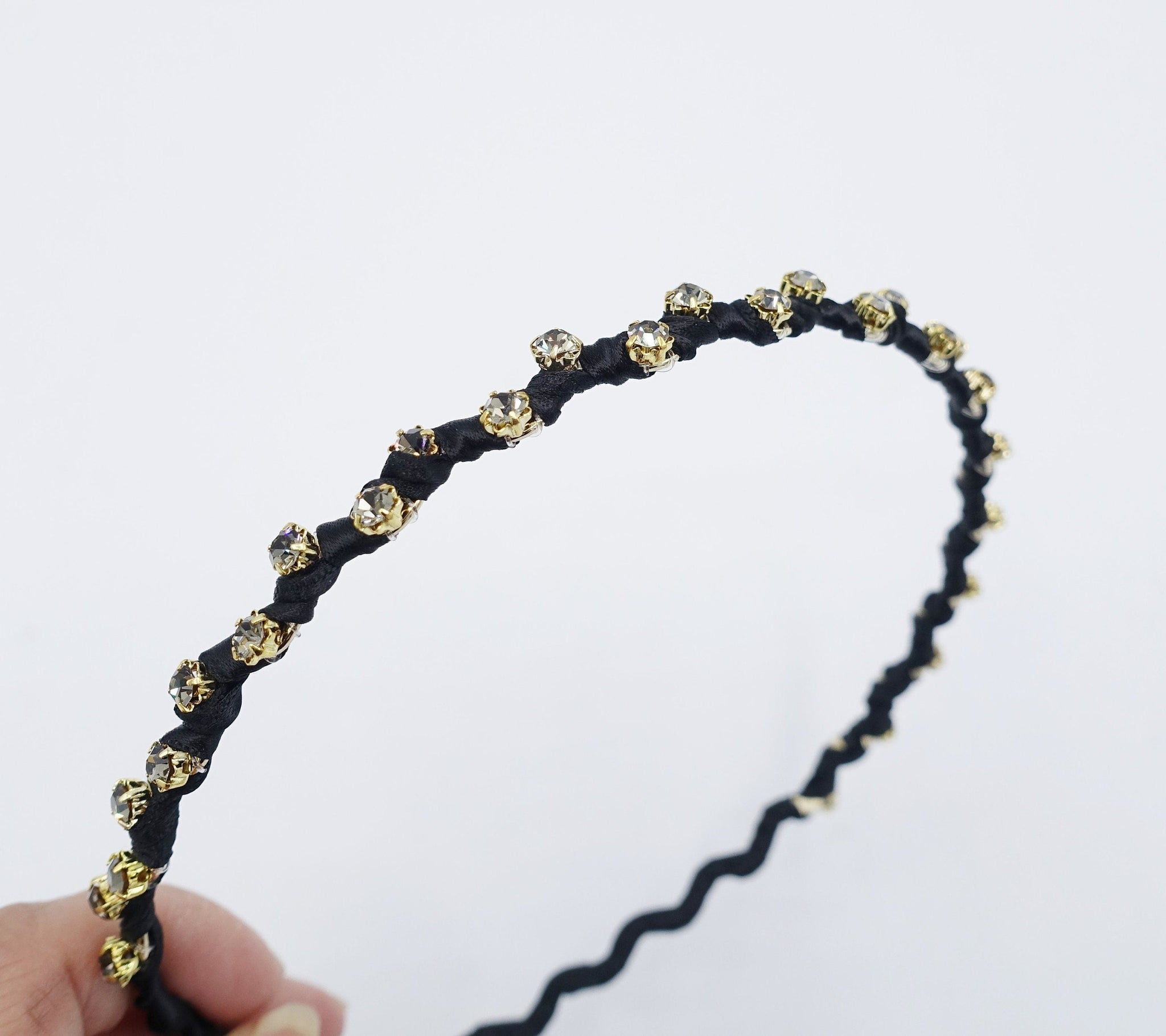 rhinestone embellished wave satin wrap headband thin hairband women hair accessory