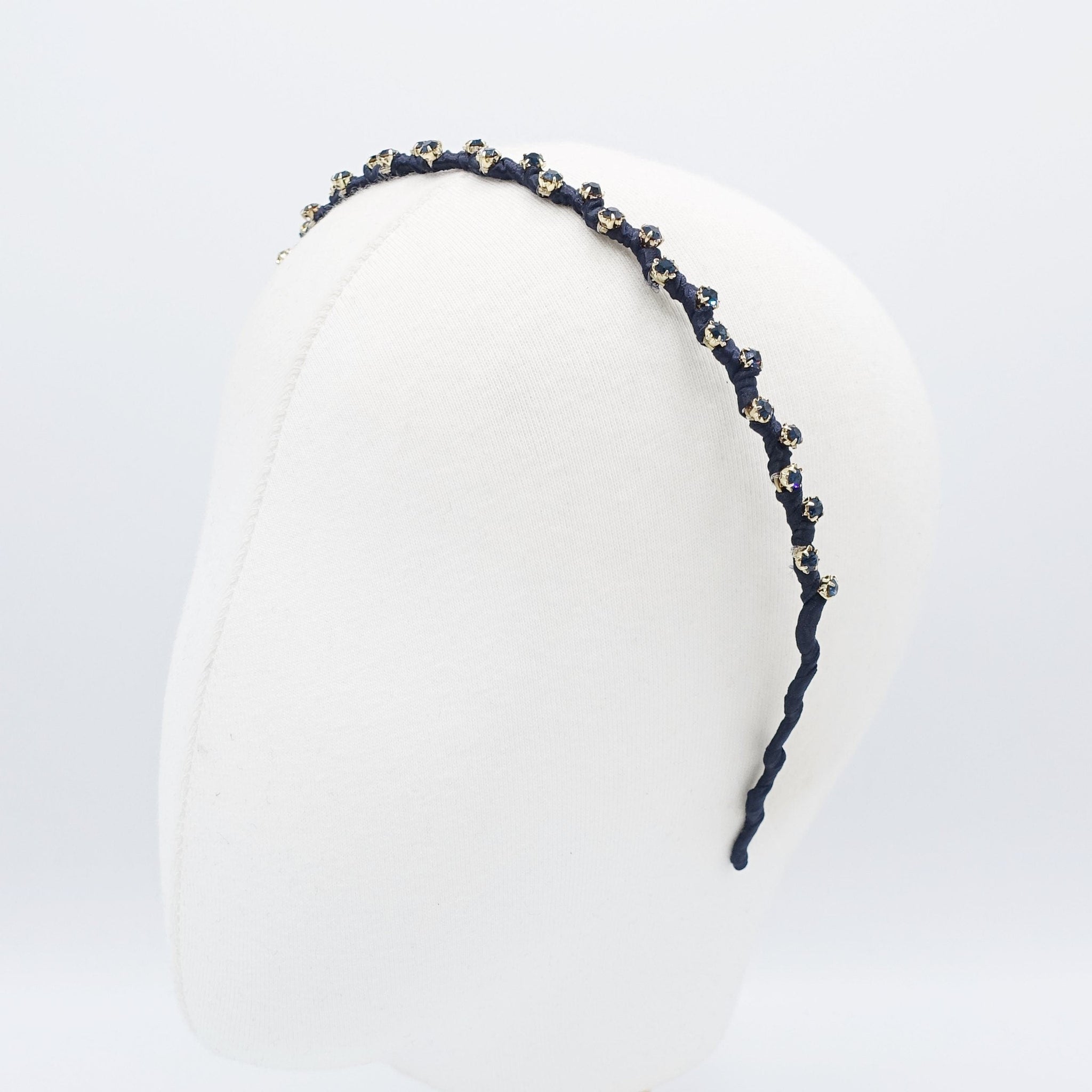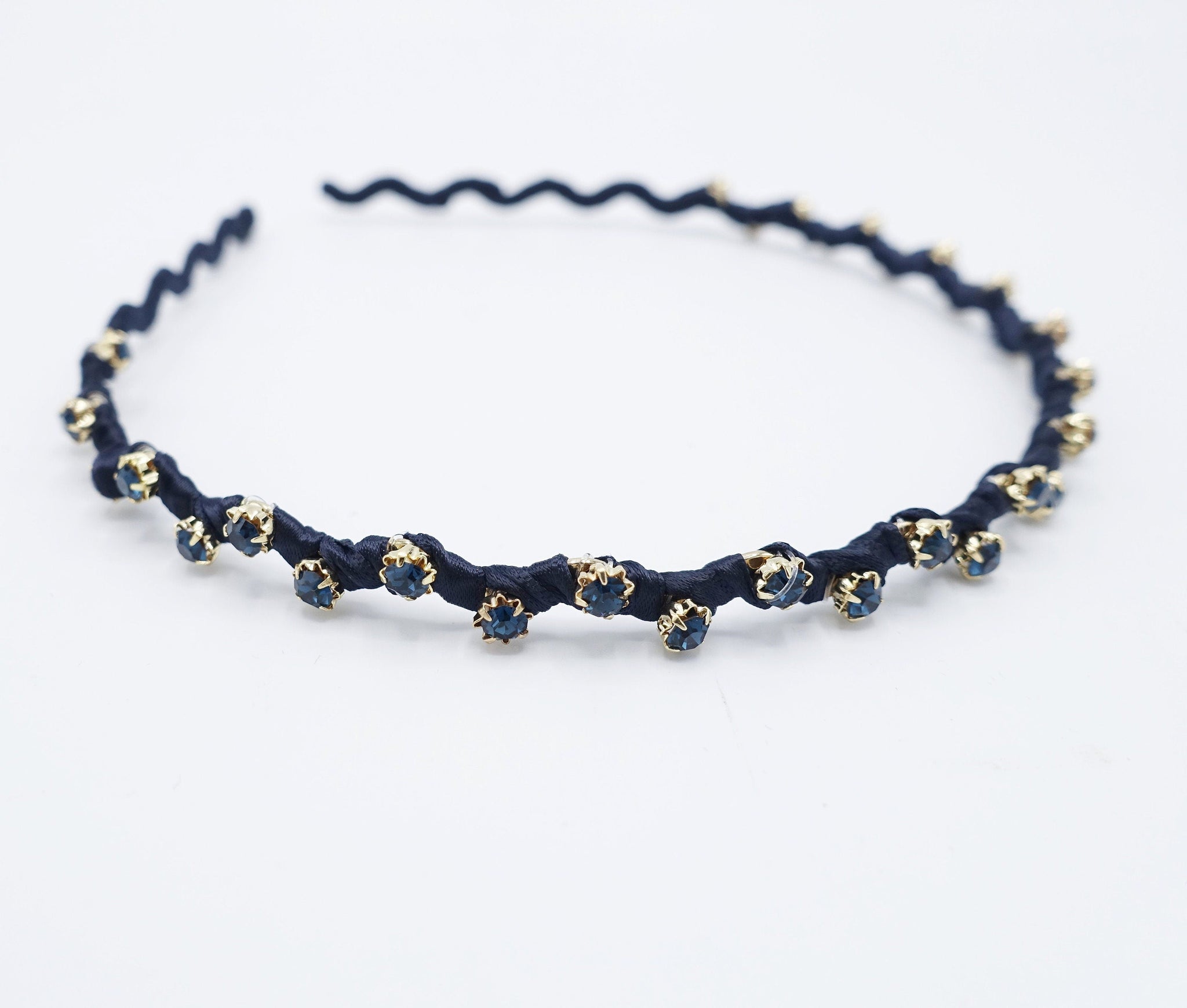 veryshine.com Headband Navy rhinestone embellished wave satin wrap headband thin hairband women hair accessory