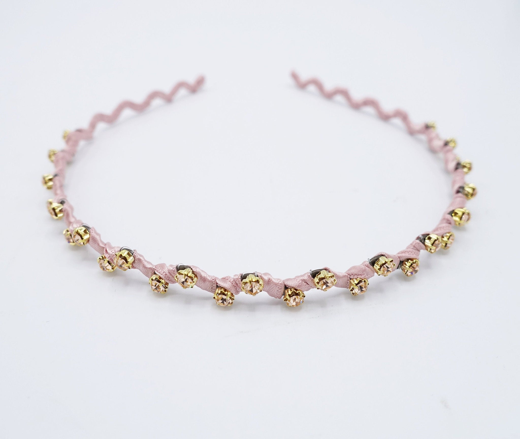 veryshine.com Headband Pink rhinestone embellished wave satin wrap headband thin hairband women hair accessory