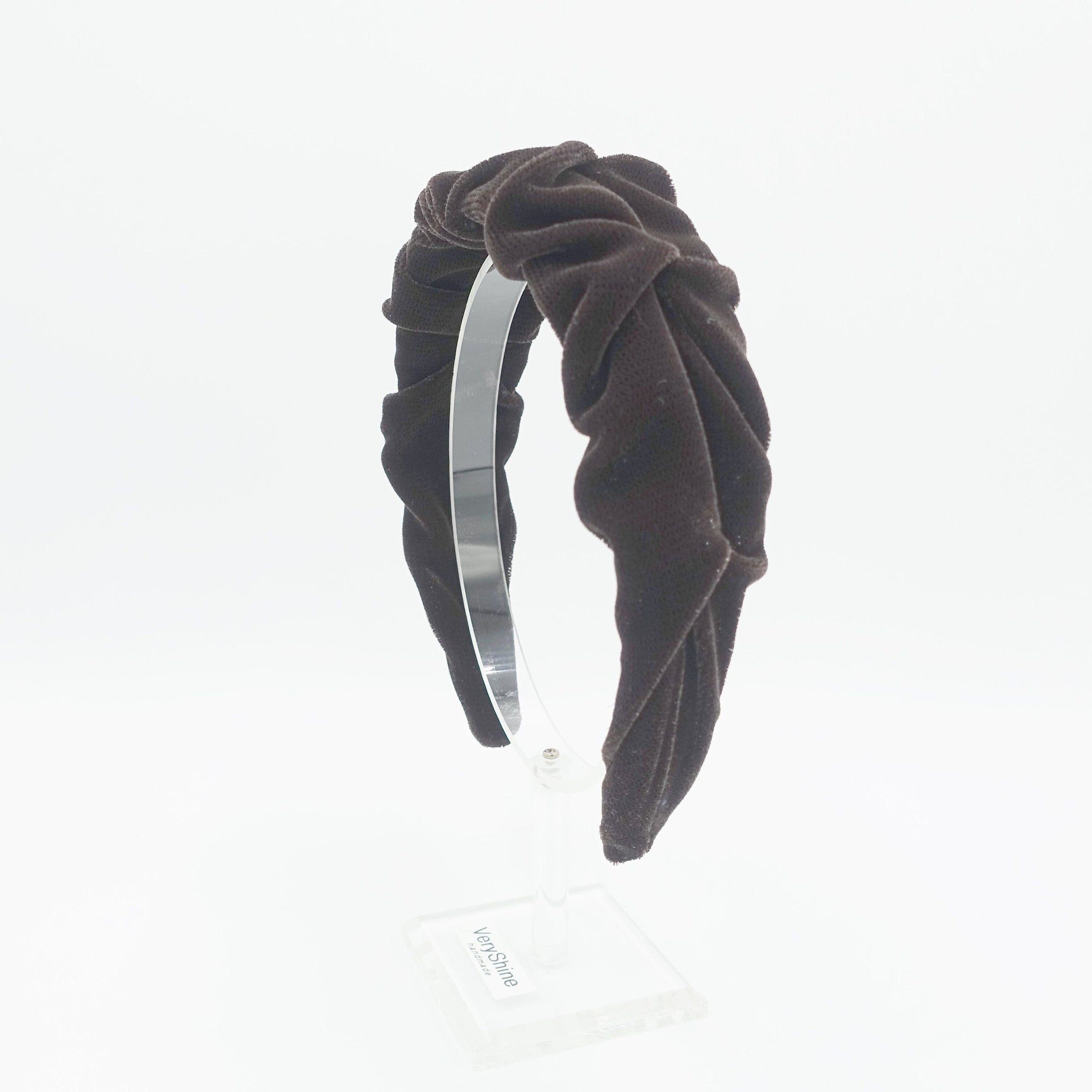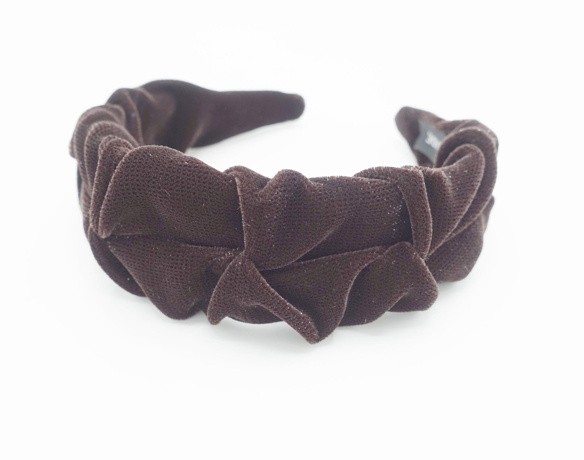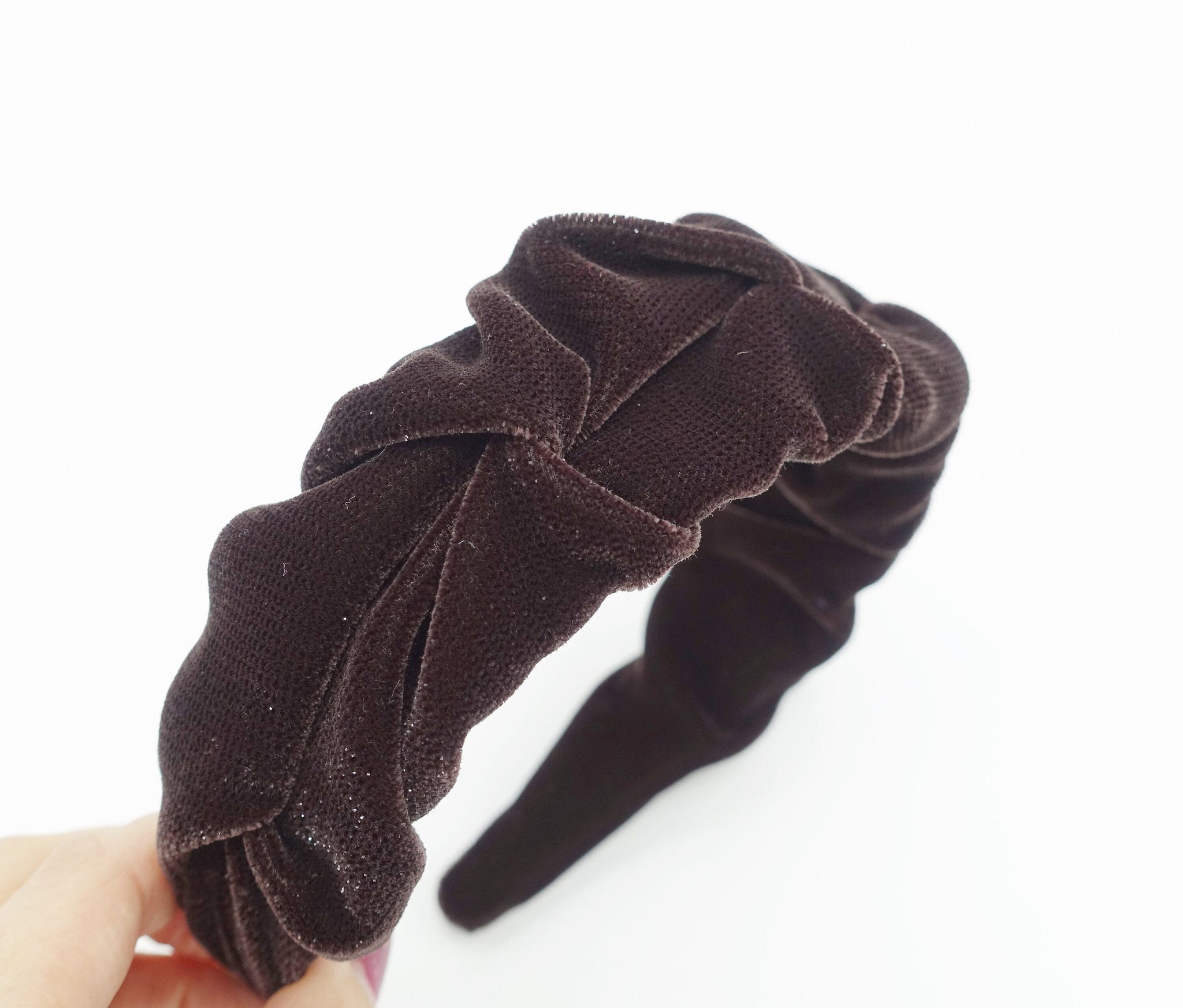 veryshine.com Headband Brown velvet shimmer twist pleats headband stylish Fall Winter fashion hairband for women