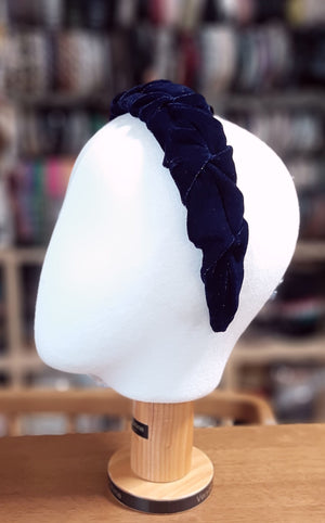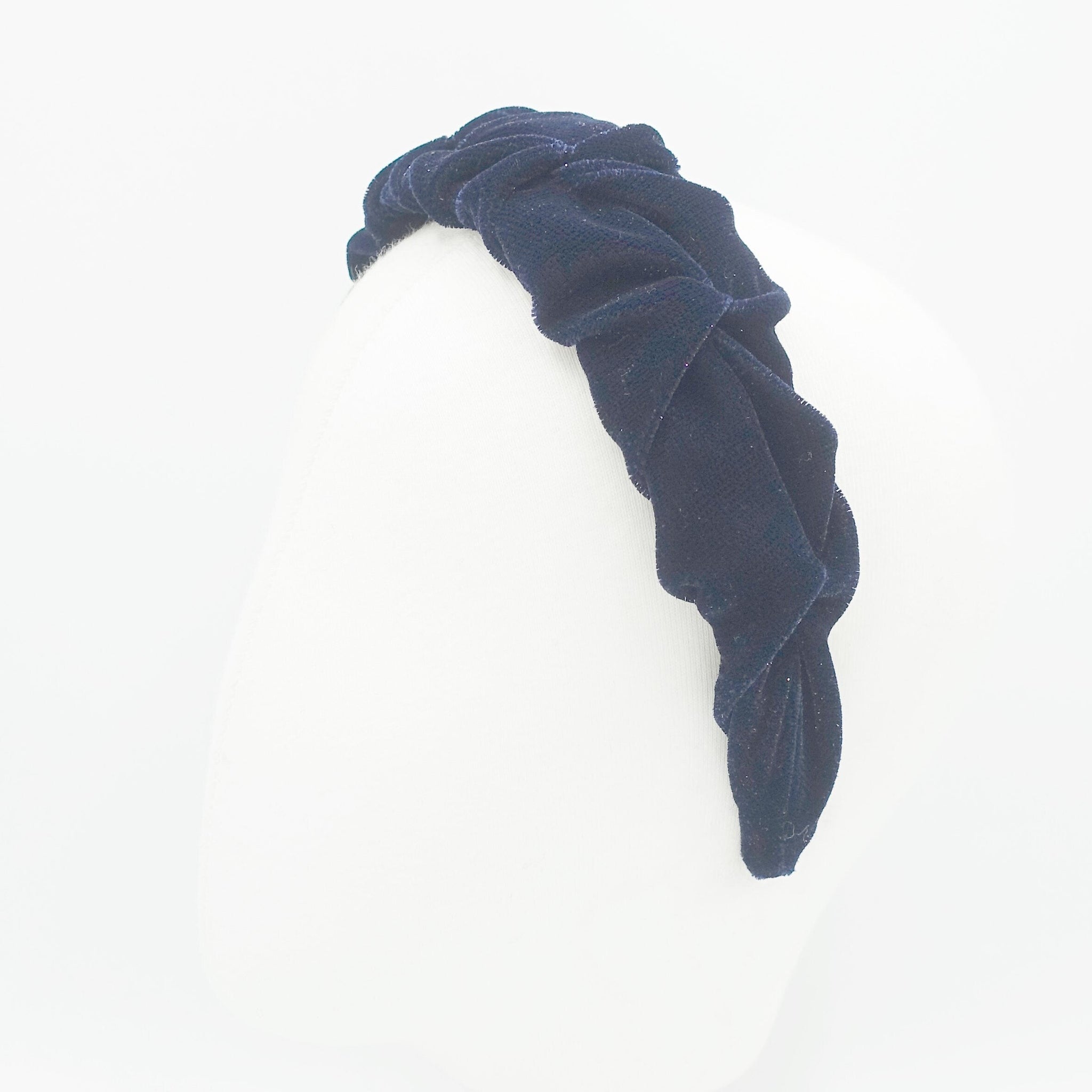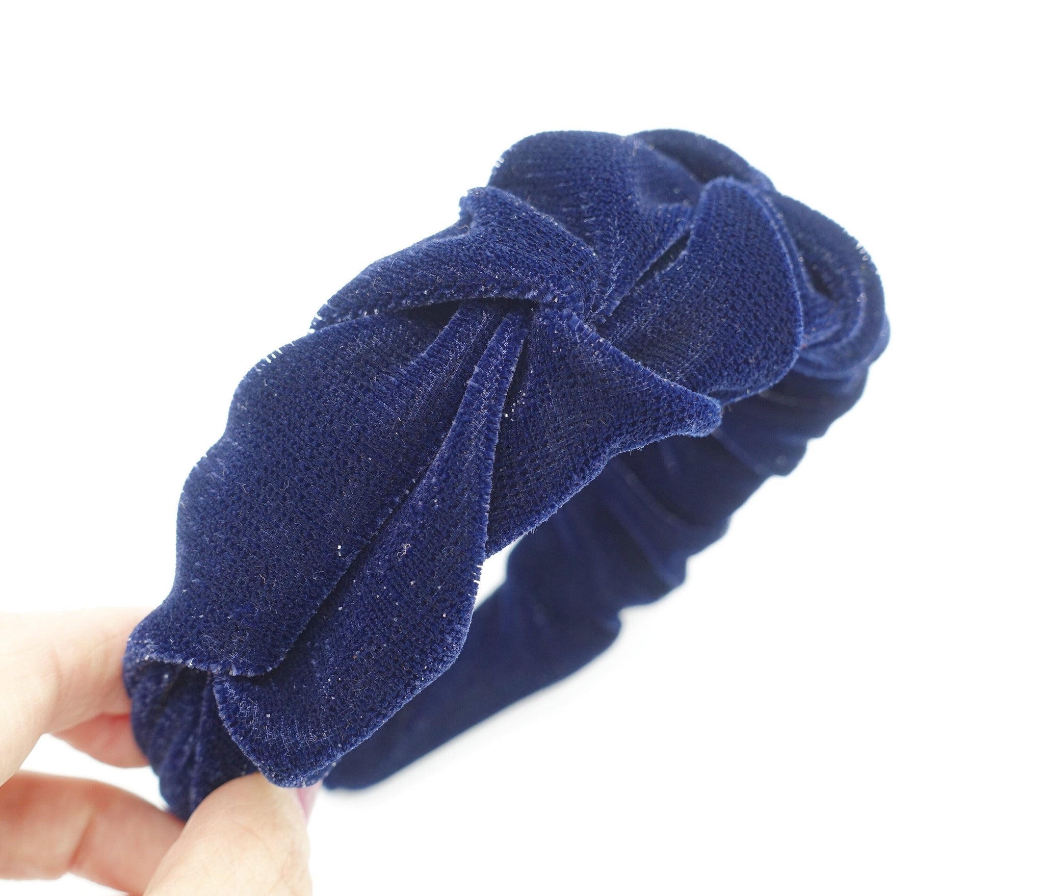 veryshine.com Headband Navy velvet shimmer twist pleats headband stylish Fall Winter fashion hairband for women