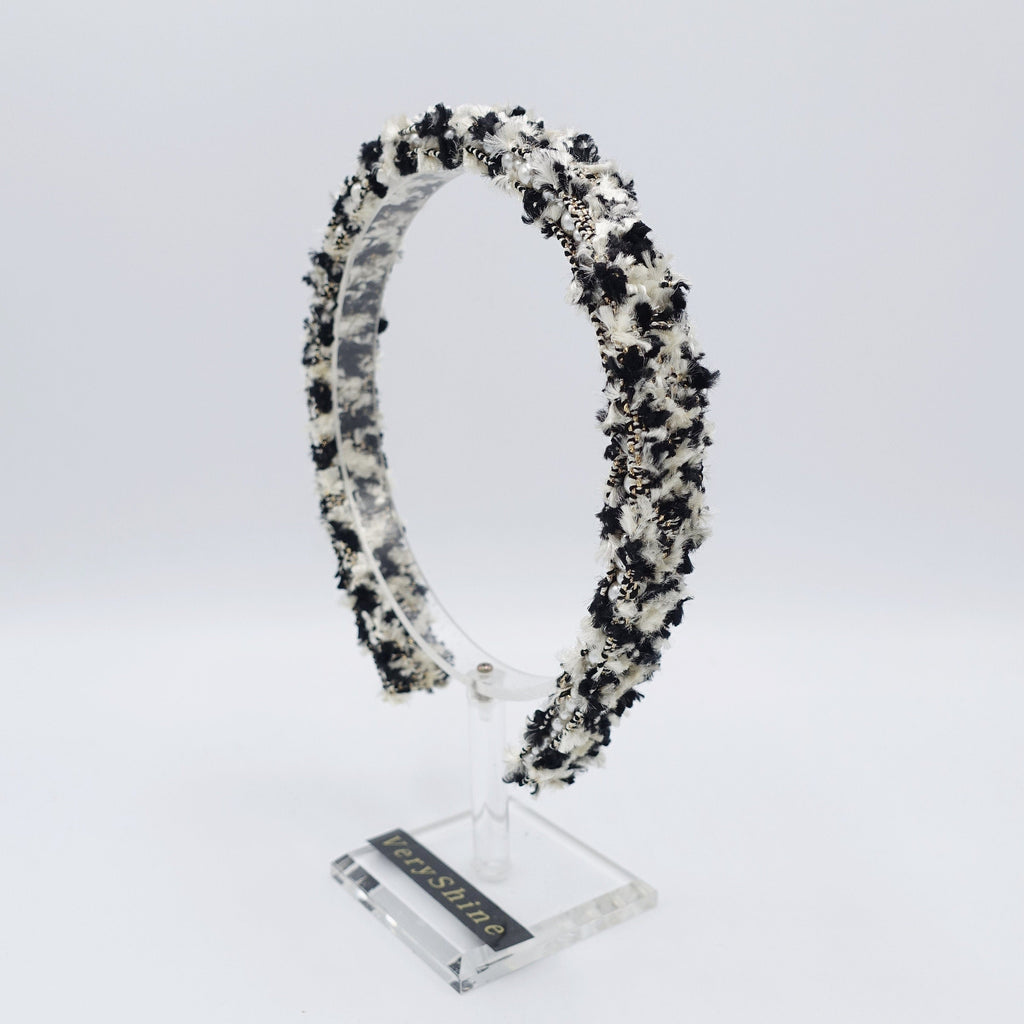 tweed headband faux pearl decorated fashion head band for women