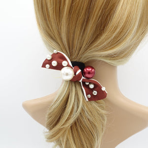 faux pearl decorated bow knot ponytail holder and pearl decorated hair elastic