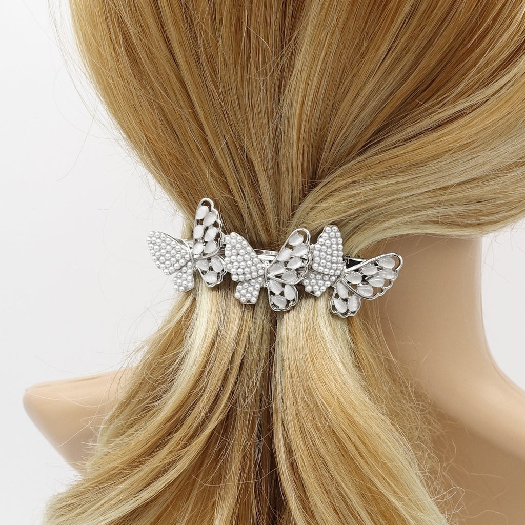 VeryShine claw/banana/barrette Silver flower butterfly metal  hair barrette