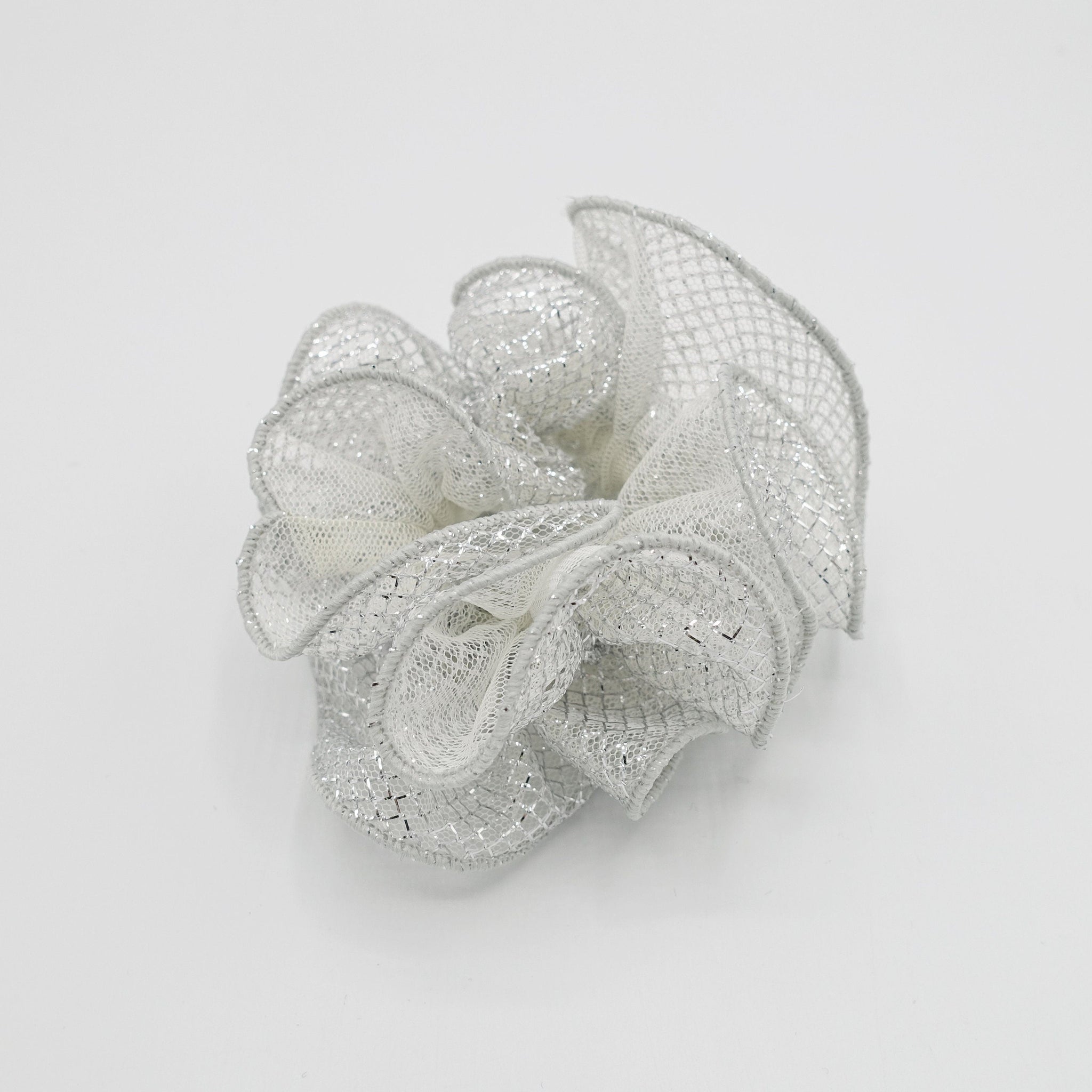 veryshine.com Scrunchies Silver white mesh lame hair scrunchies glittering hair elastic for women