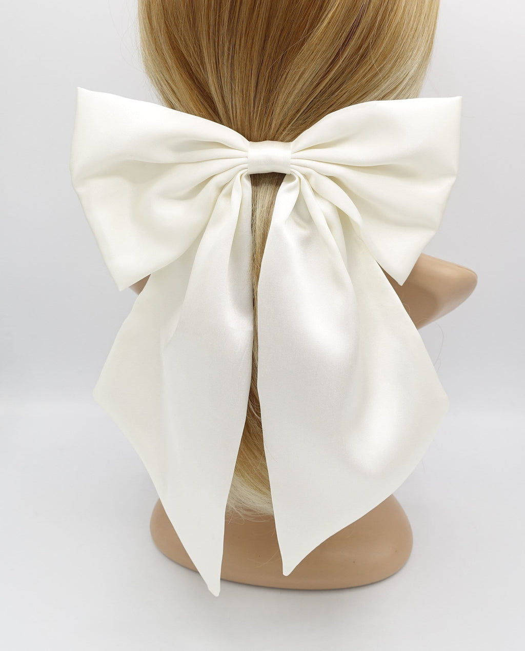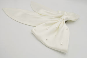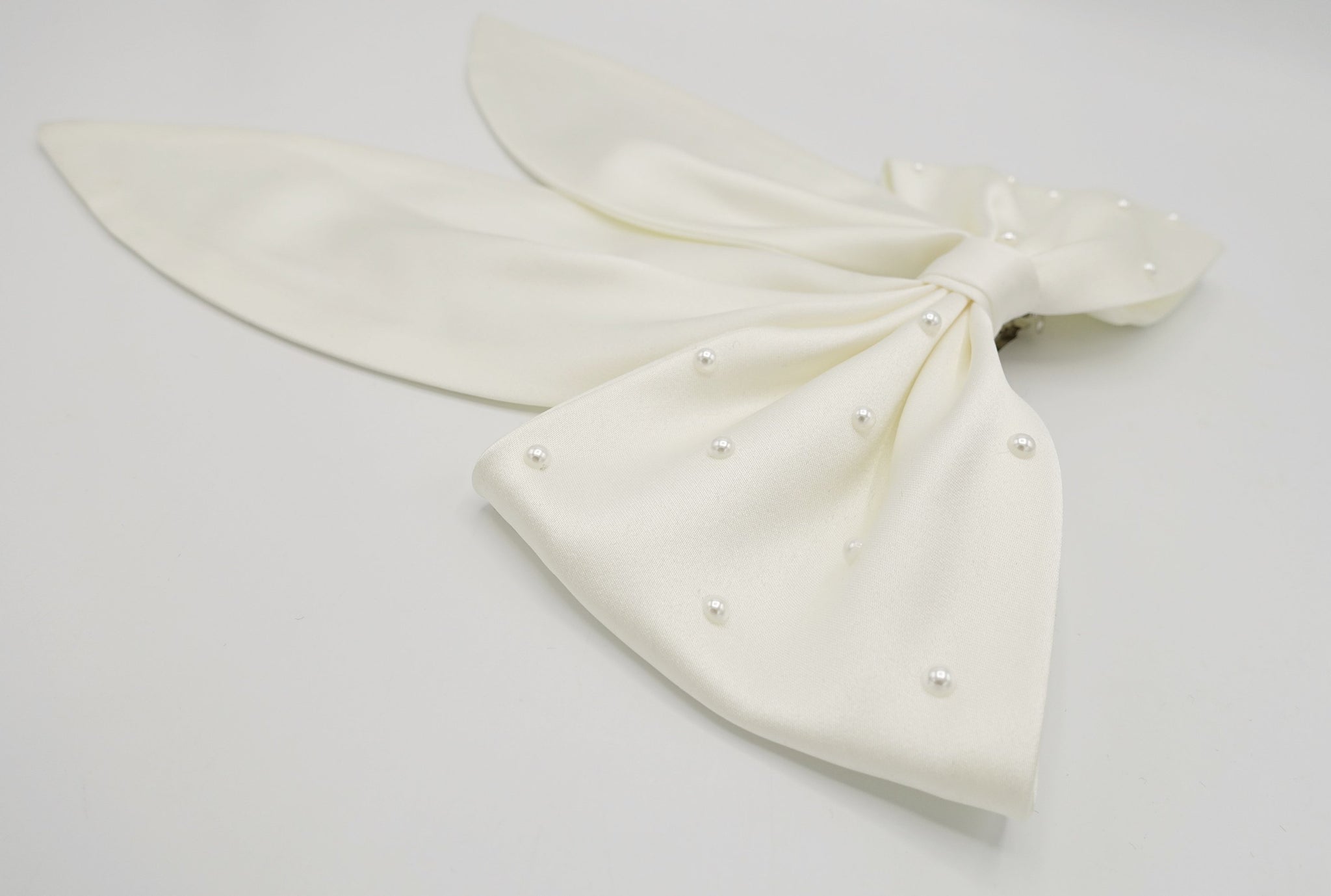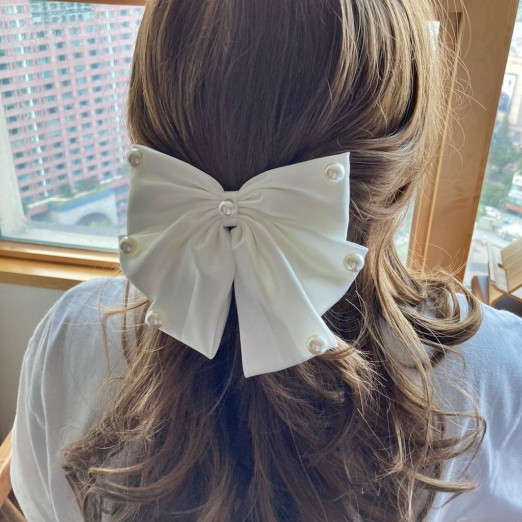 veryshine3 claw/banana/barrette Cream white pearl embellished satin hair bow big size large hair bow for women