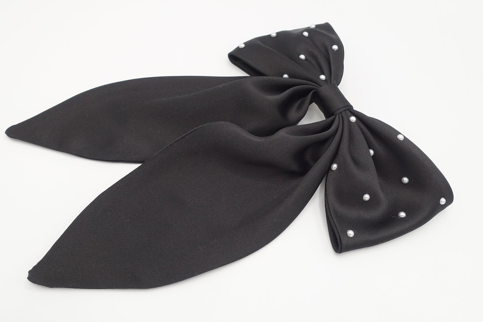 veryshine3 claw/banana/barrette Black pearl embellished satin hair bow big size large hair bow for women