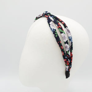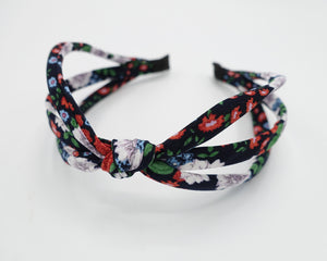 2 floral fabric wrapped wires are knotted on the steel frame hairband