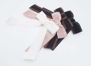Velvet Frill Hair Bow, Long Tails, French Barrette