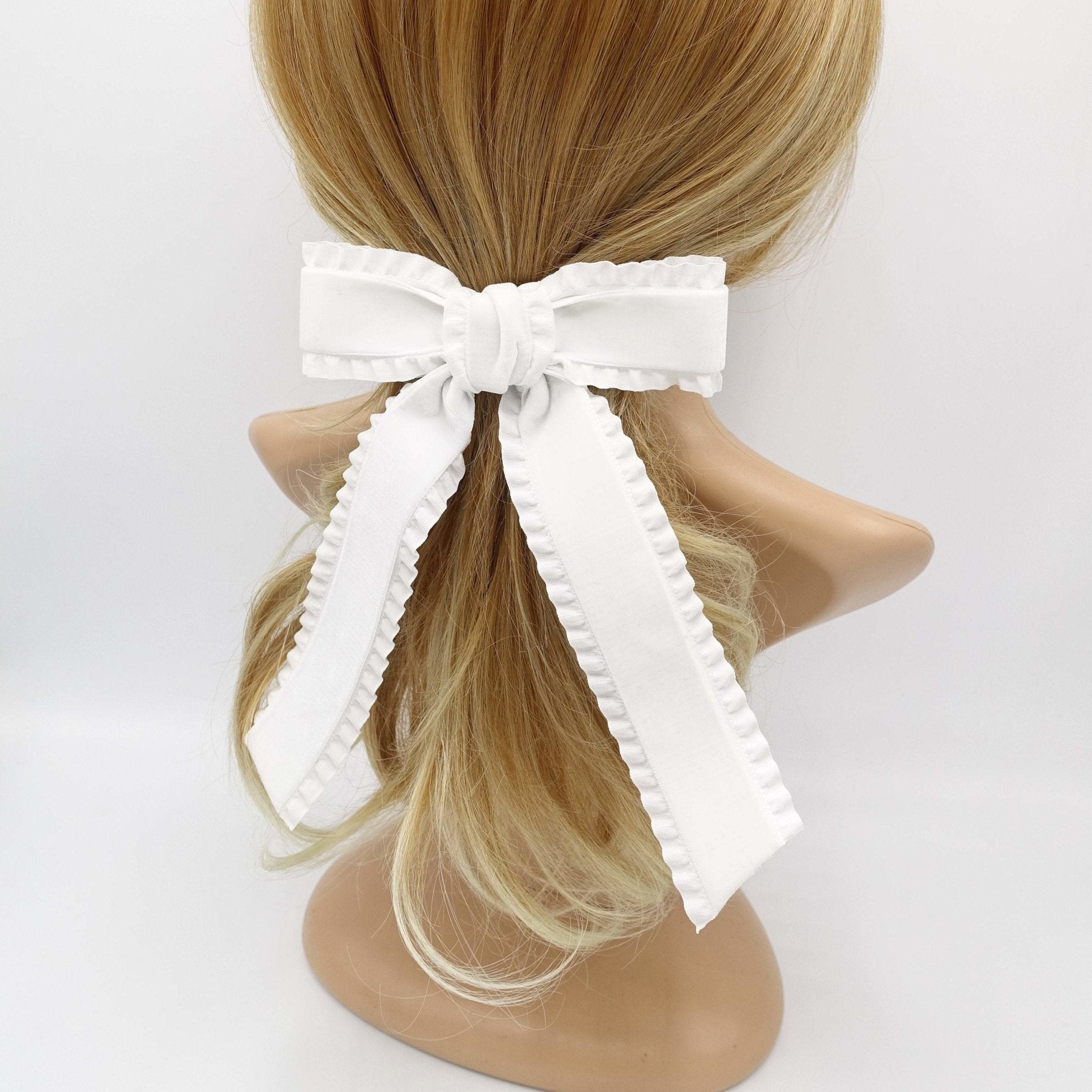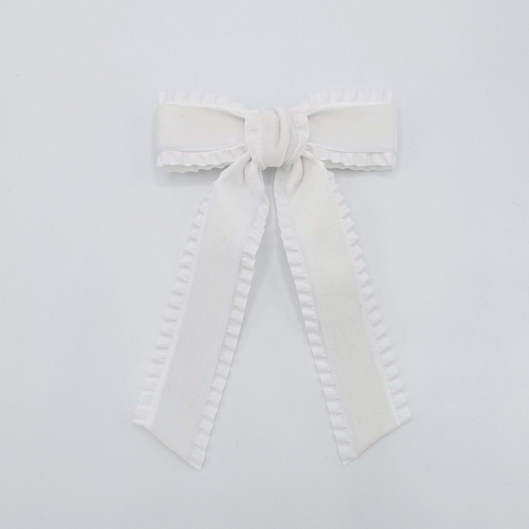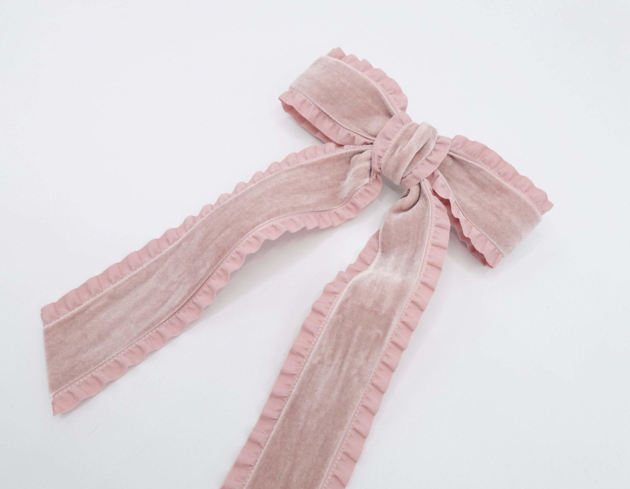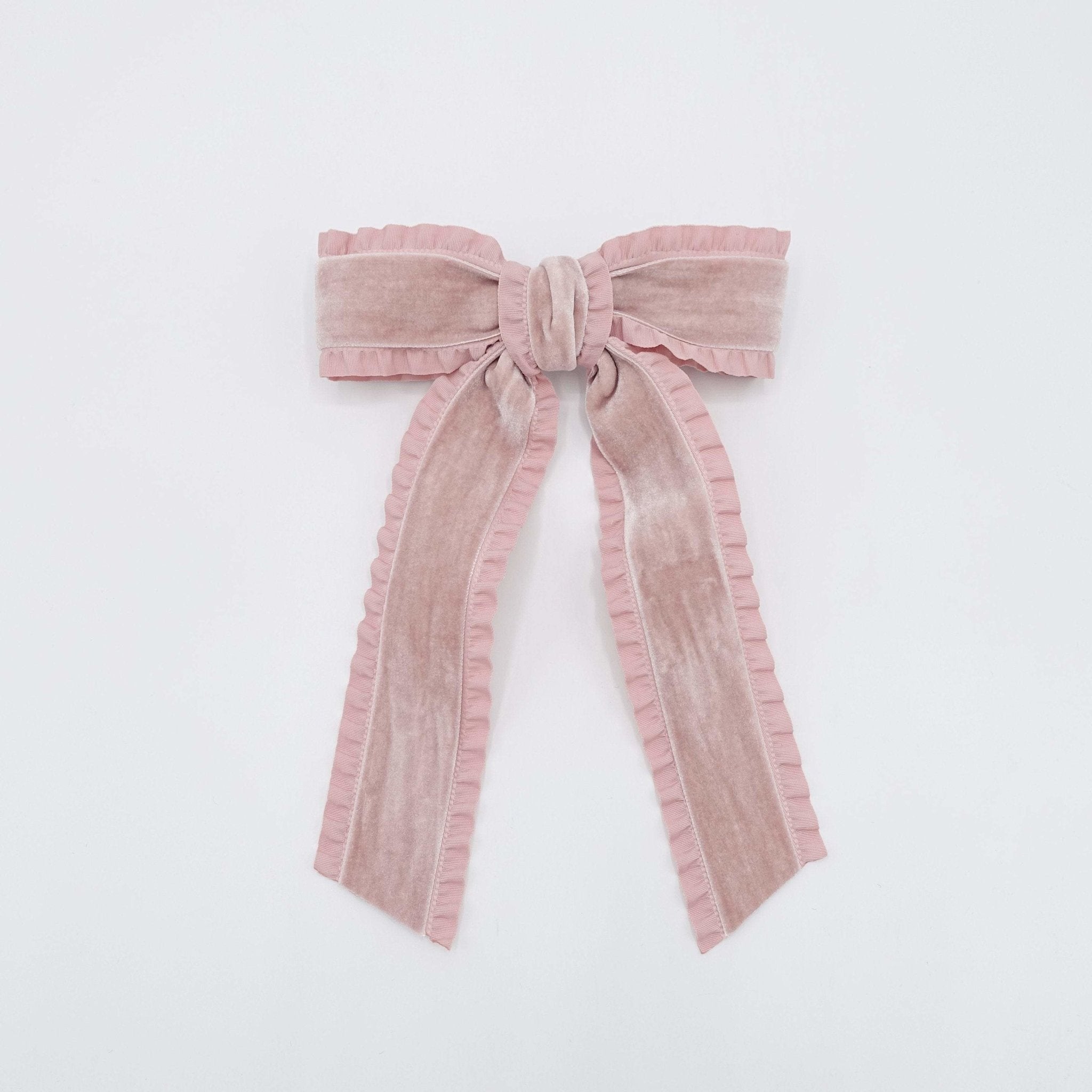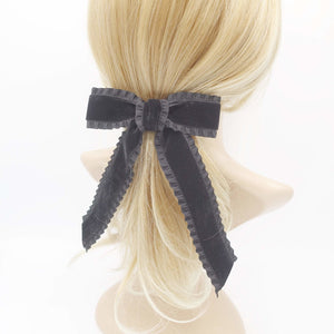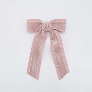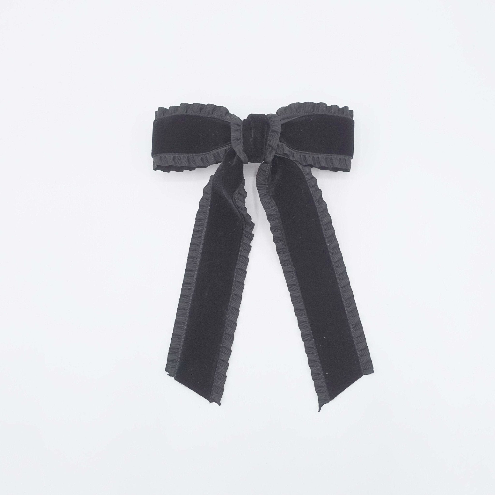 Velvet Frill Hair Bow, Long Tails, French Barrette – veryshine.com