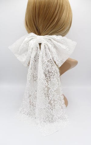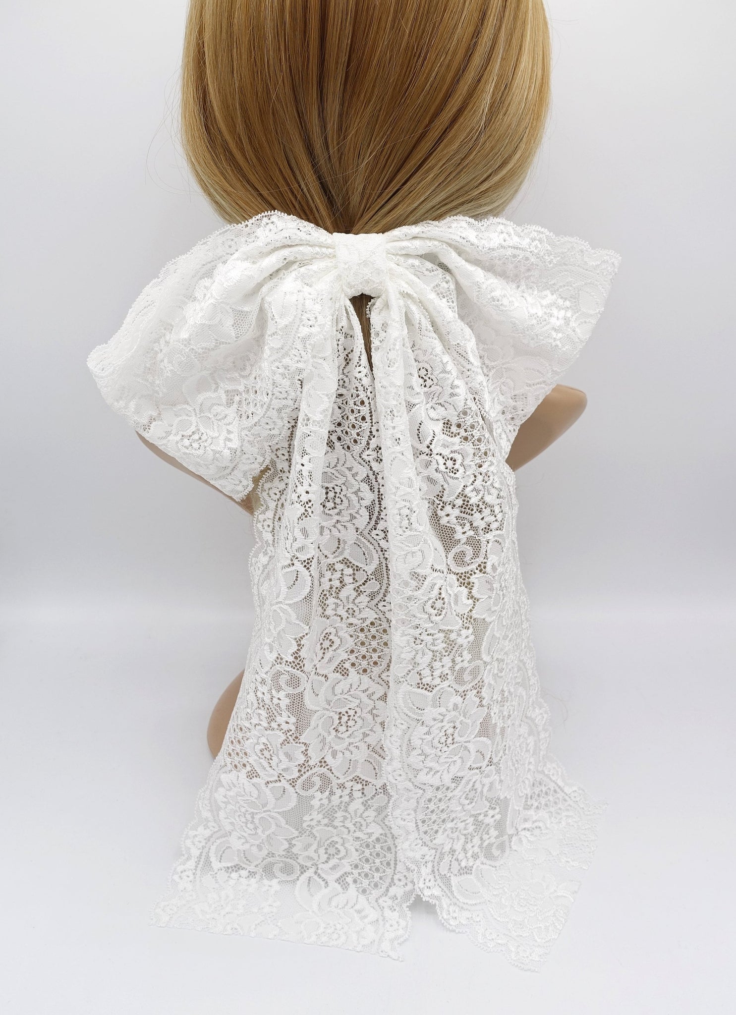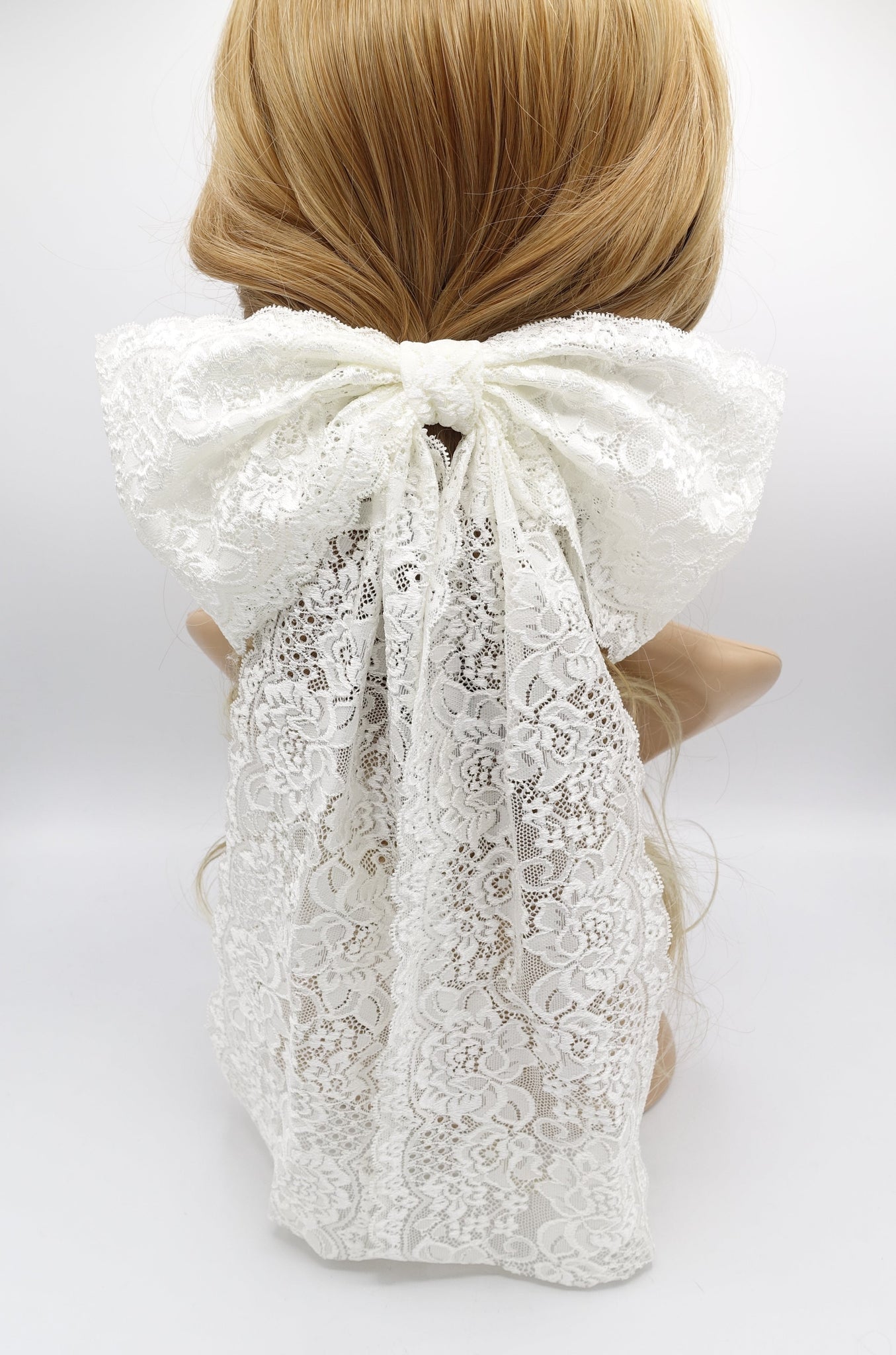 Floral Lace Wedding Hair Bow with Long Tails – veryshine.com