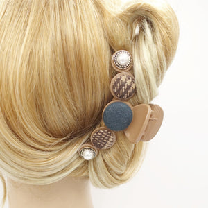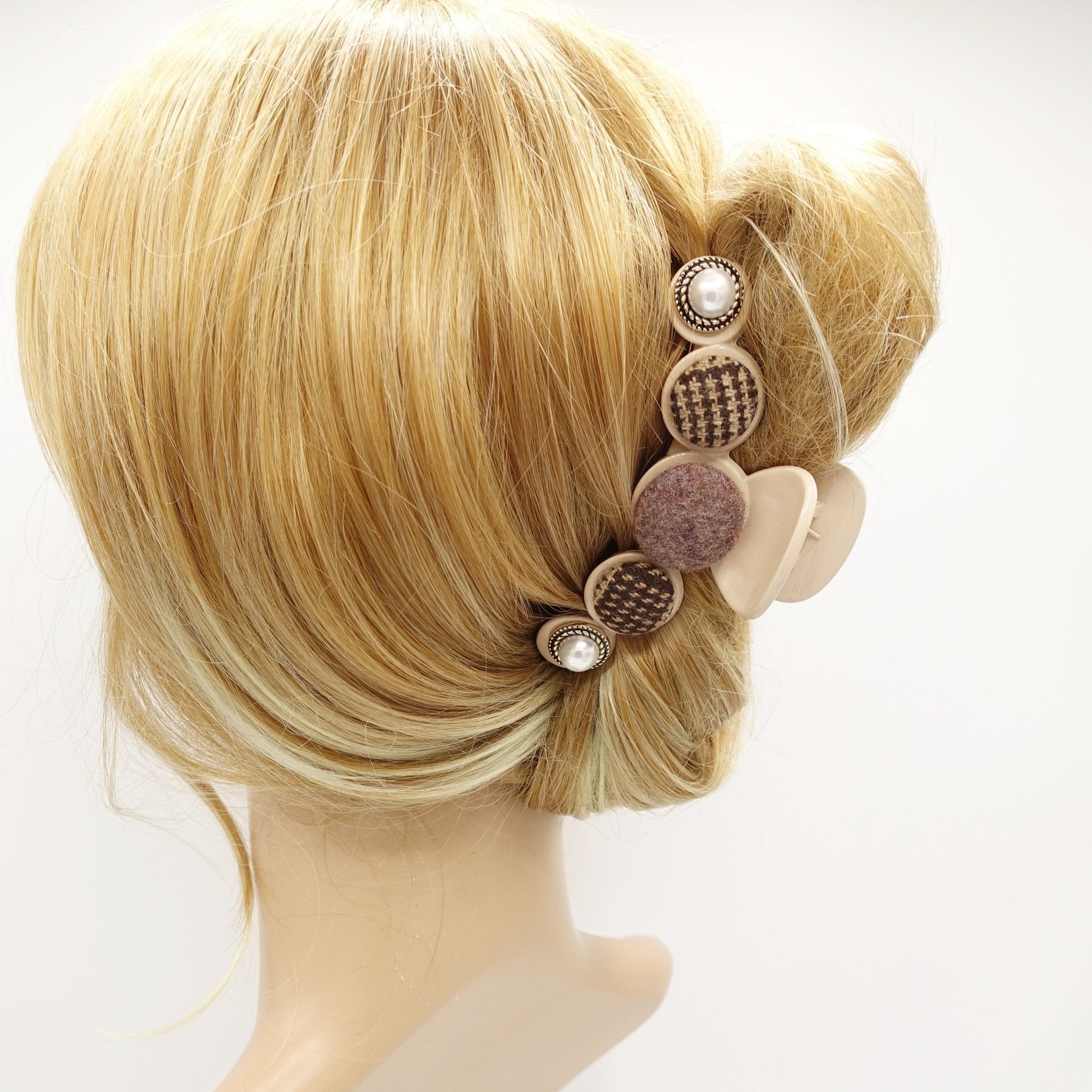 VeryShine claw/banana/barrette Mocca beige button hair claw woolen fabric pearl button embellished hair clamp updo hair accessory for women