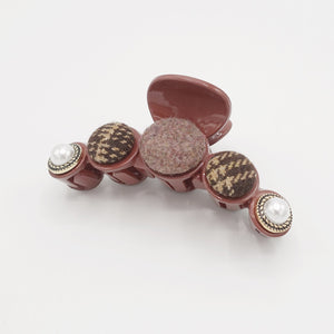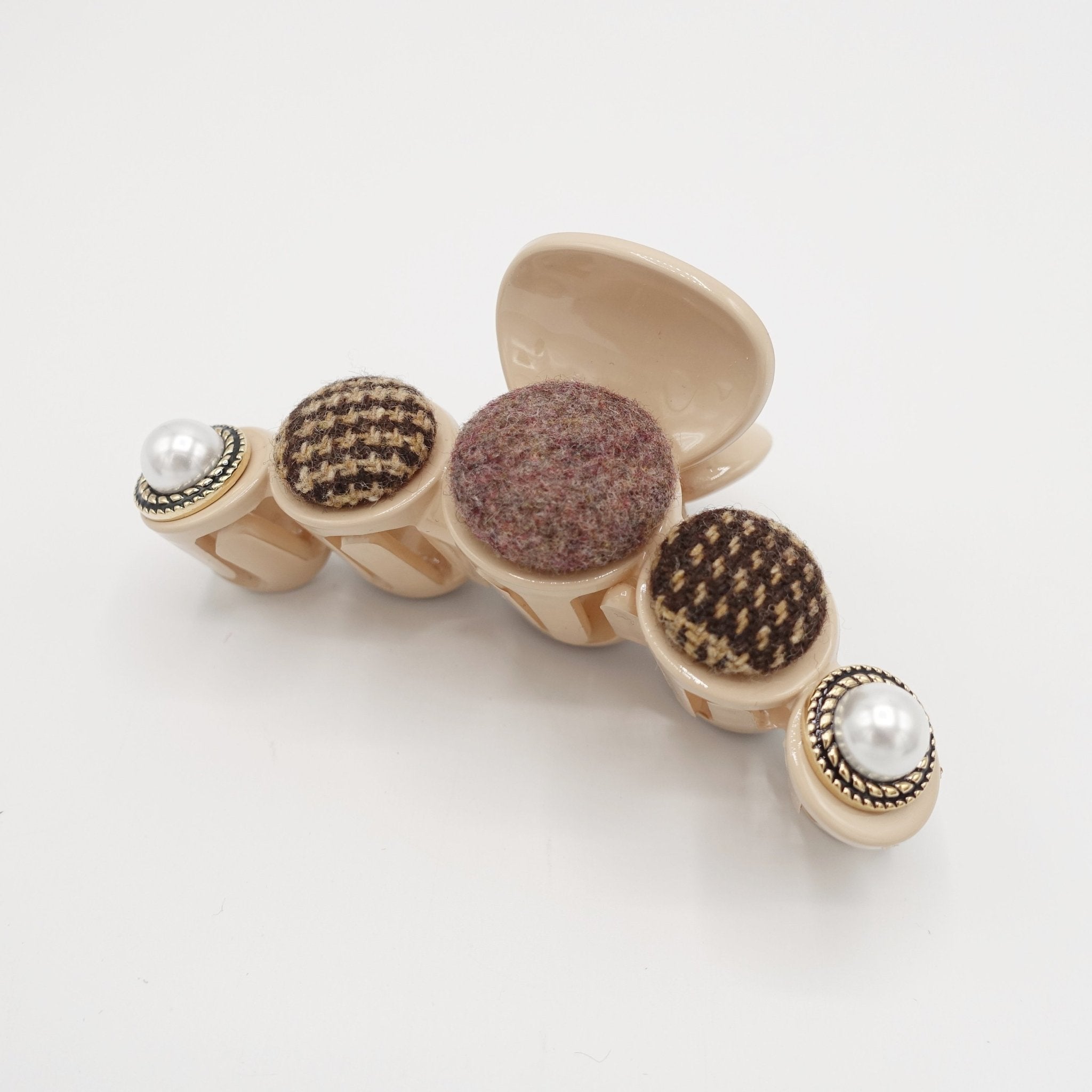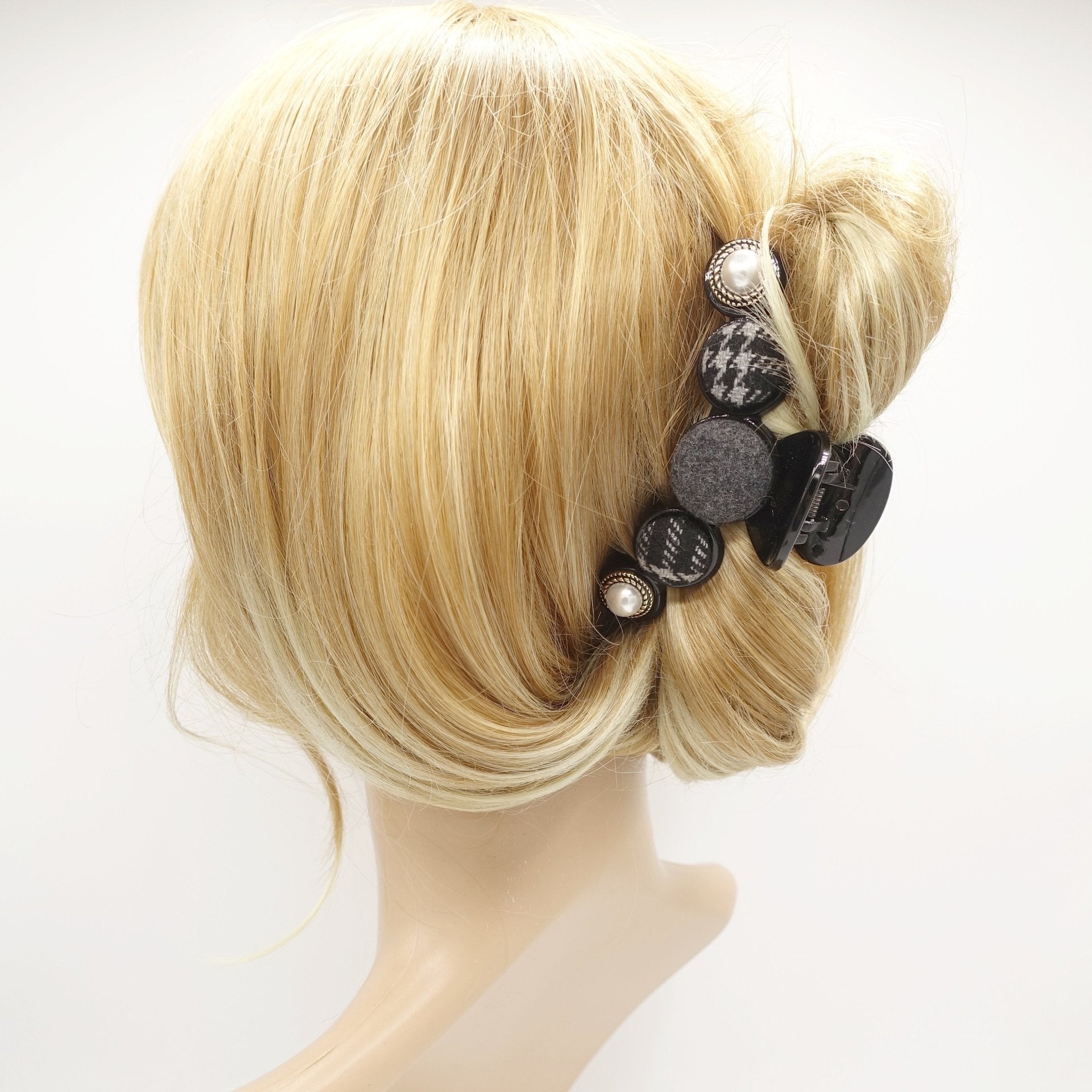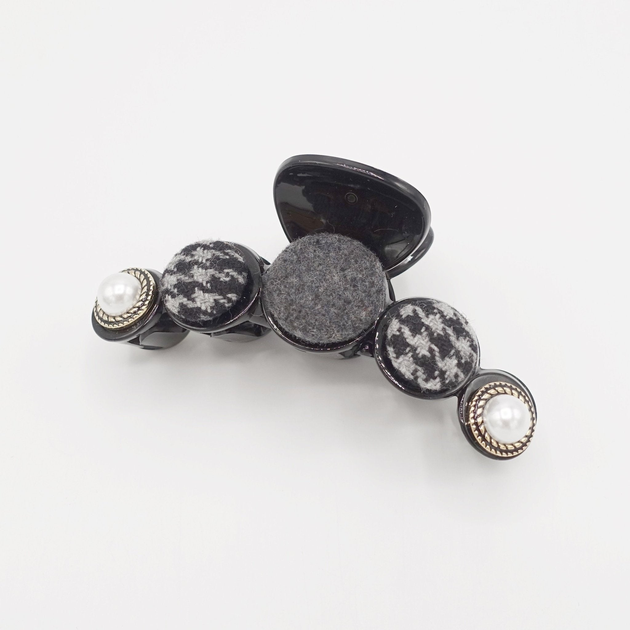 Woolen Button Hair Claw: Houndstooth Pearl Hair Clamp – veryshine.com