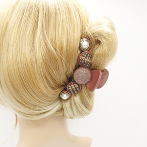 VeryShine claw/banana/barrette Choco brown button hair claw woolen fabric pearl button embellished hair clamp updo hair accessory for women