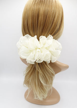 veryshine.com Barrette (Bow) Cream white chiffon ruffle flower hair barrette woman hair accessory