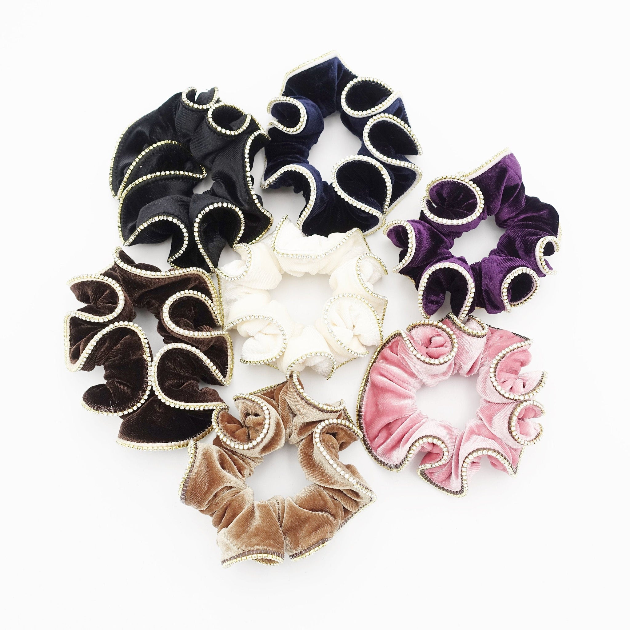 crystal rhinestone decorated velvet scrunchies women hair elastic tie scrunchy
