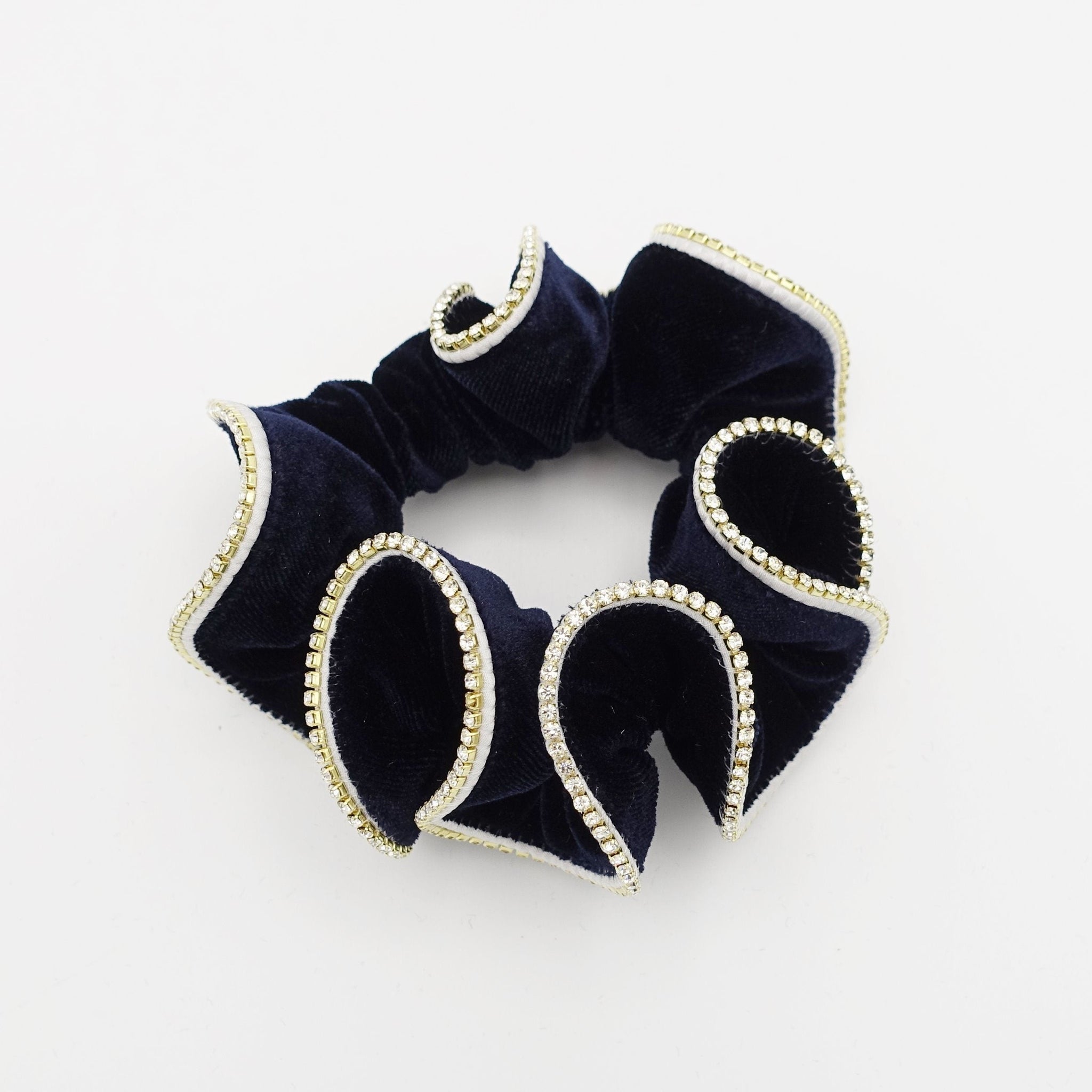veryshine.com Scrunchies Navy crystal rhinestone decorated velvet scrunchies women hair elastic tie scrunchy