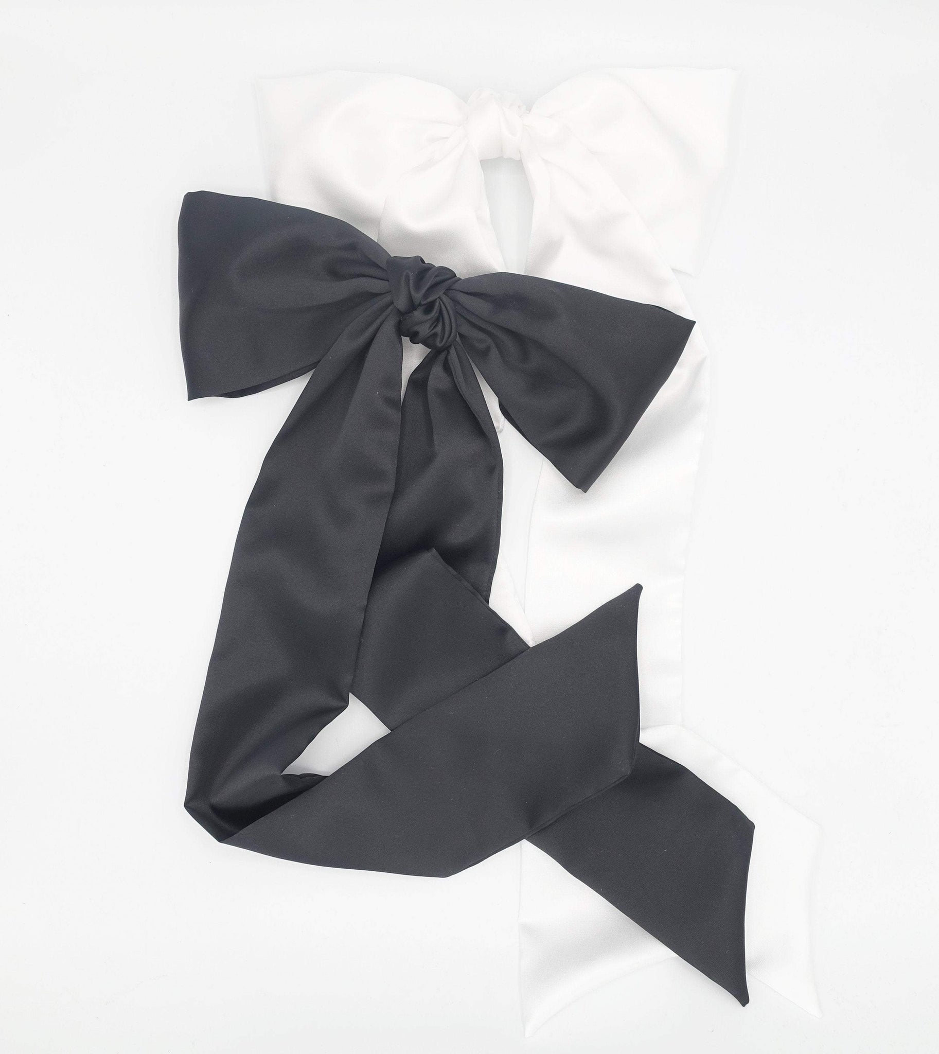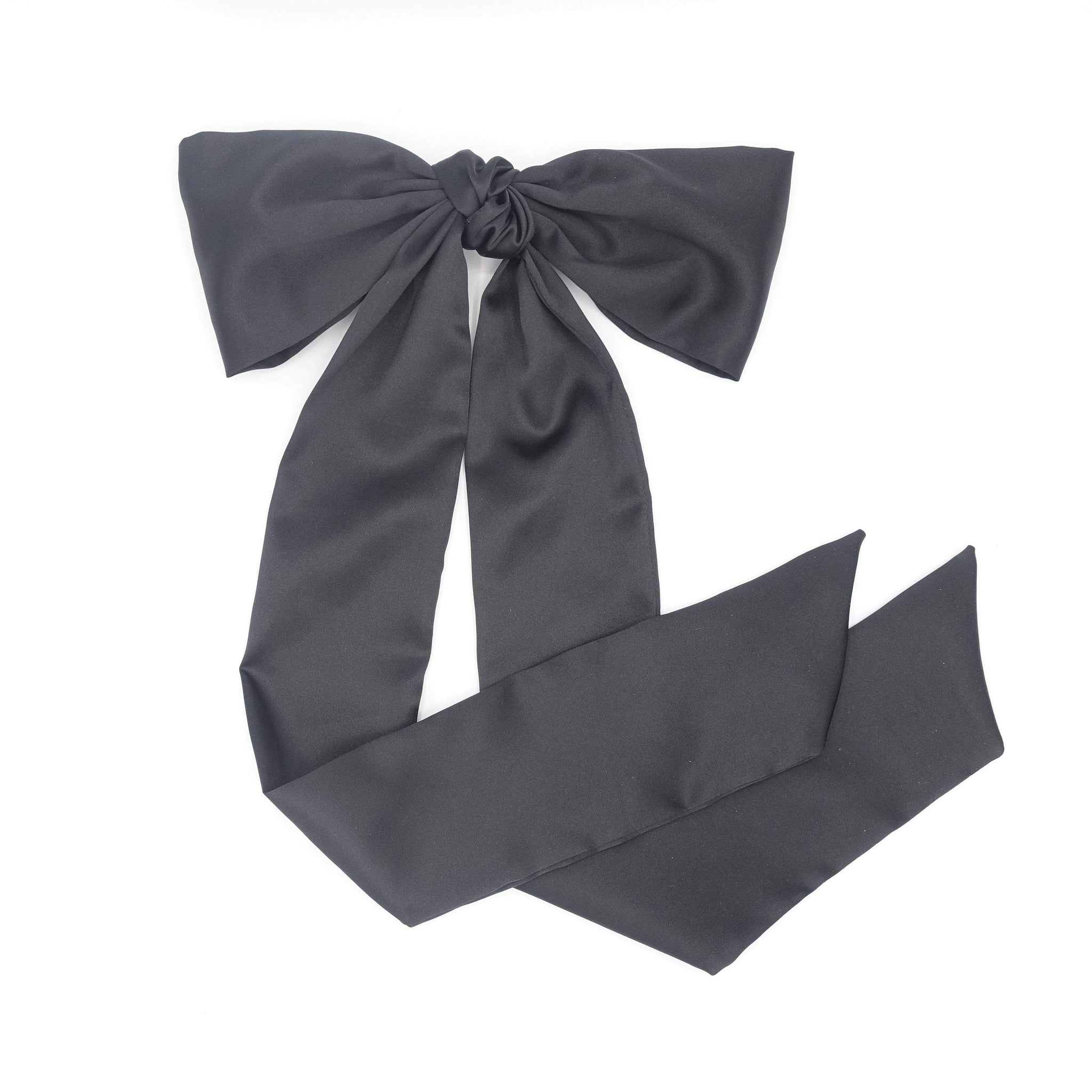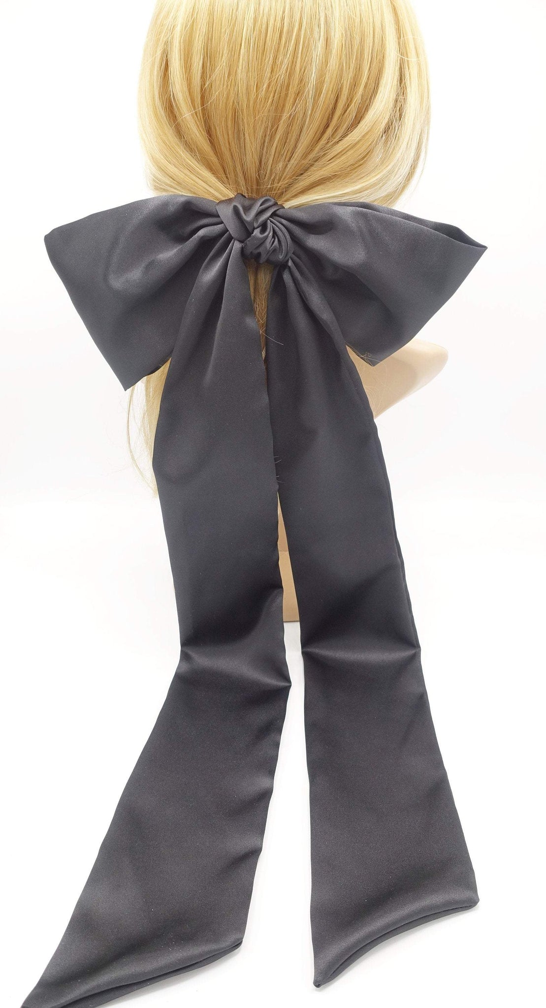 • very long-tailed satin hair bow