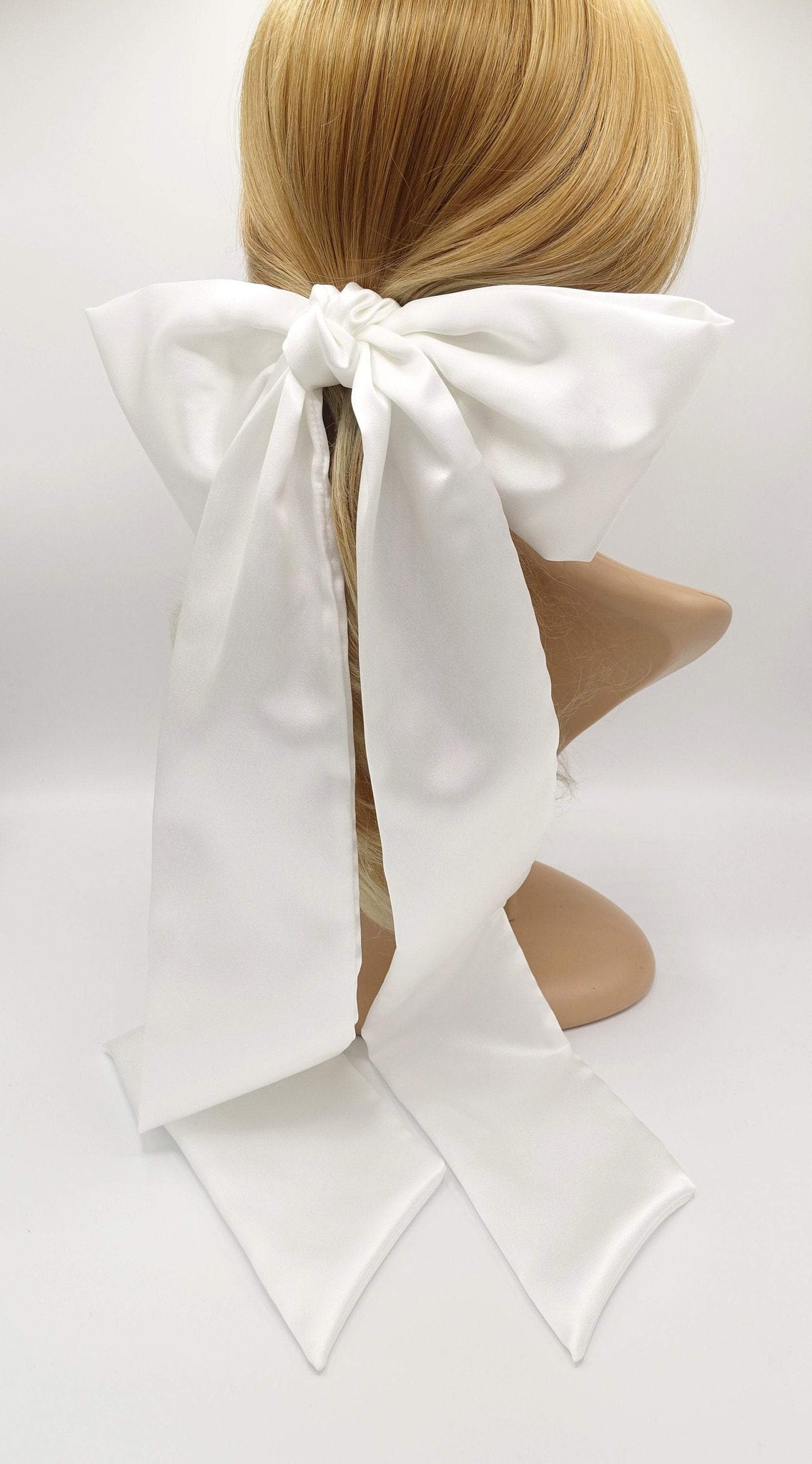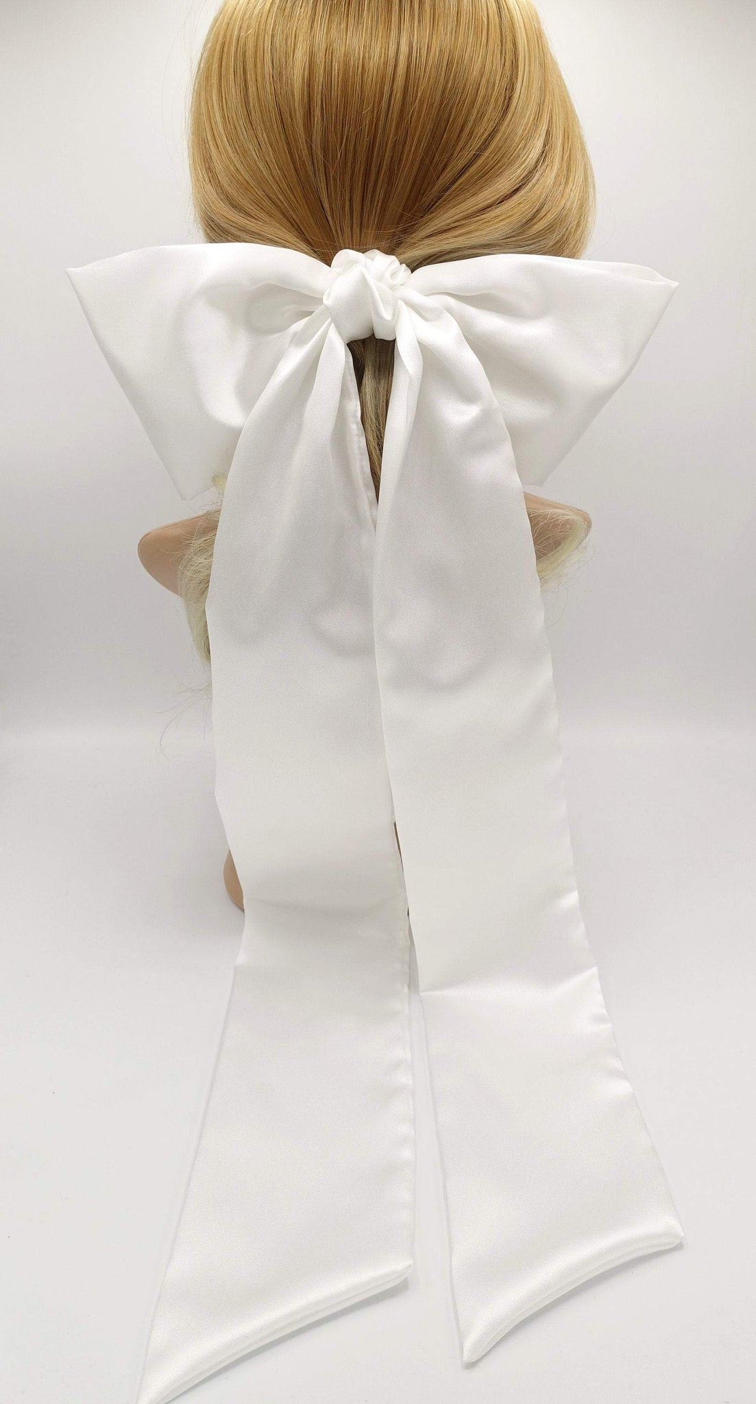 Long tailed satin hair bow bridal hair accessory for women – veryshine.com