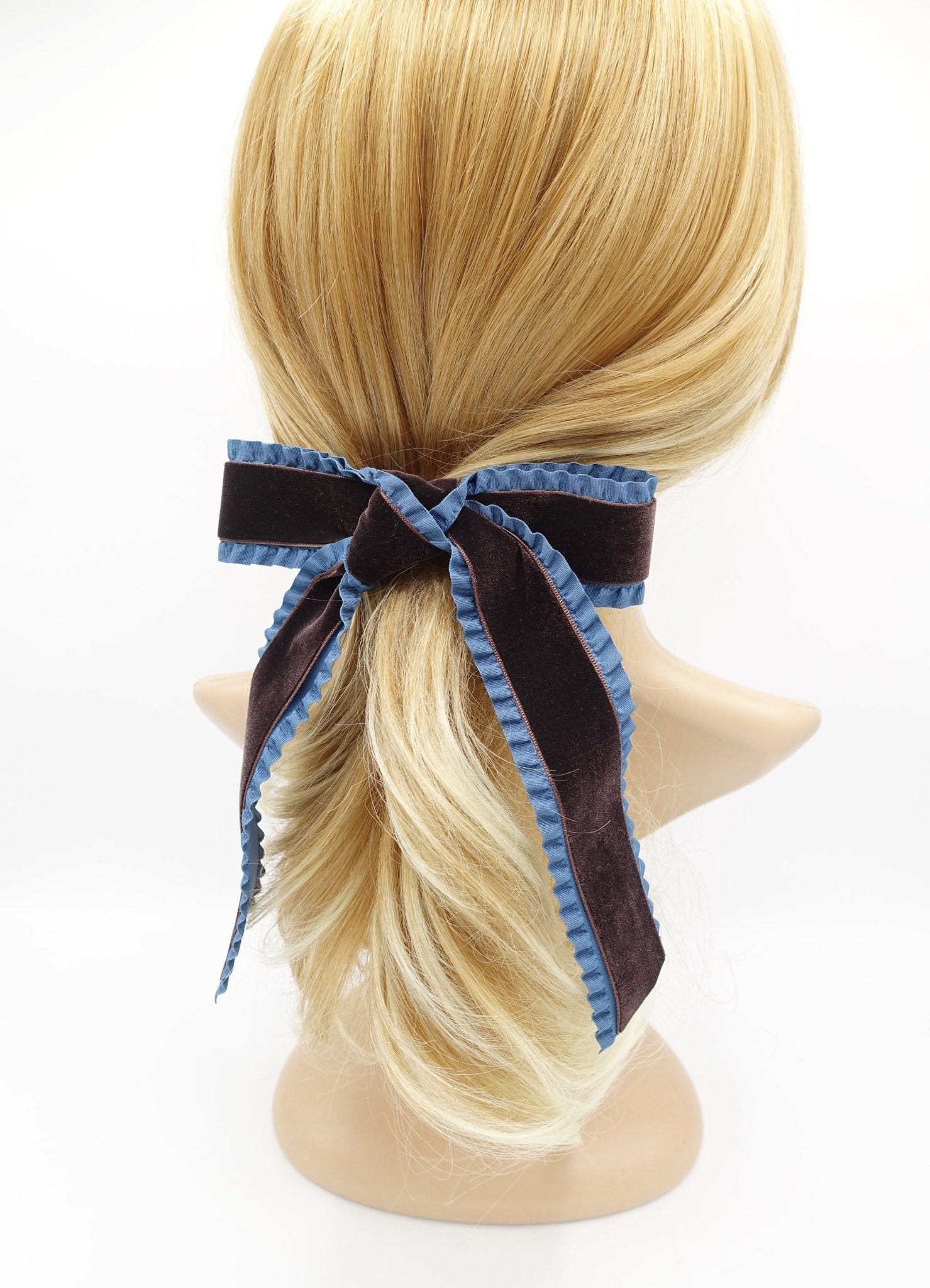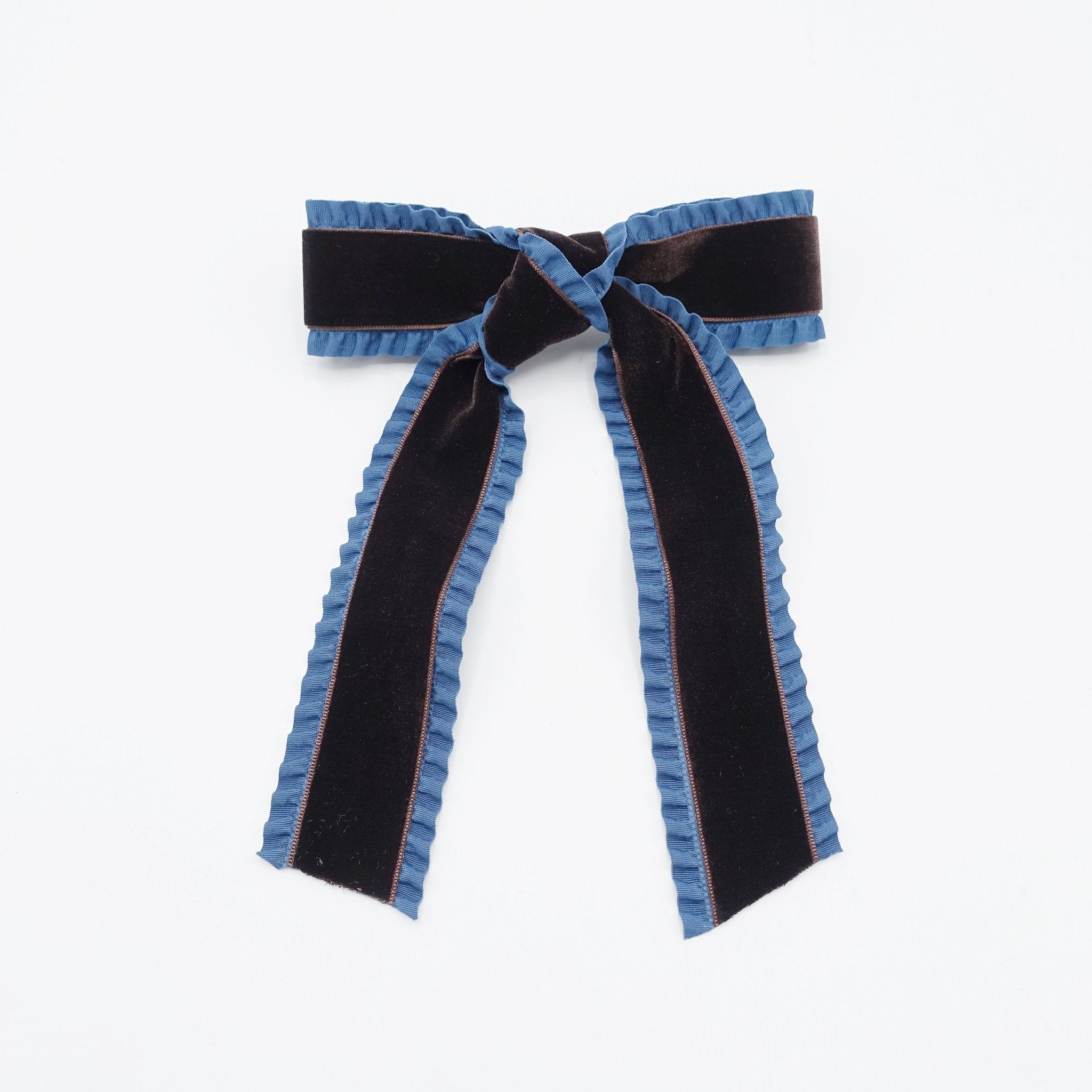 VeryShine Barrettes & Clips Blue velvet layered frill hair bow Fall Winter hair accessory for women
