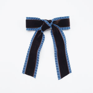 VeryShine Barrettes & Clips Navy velvet layered frill hair bow Fall Winter hair accessory for women
