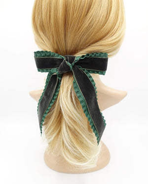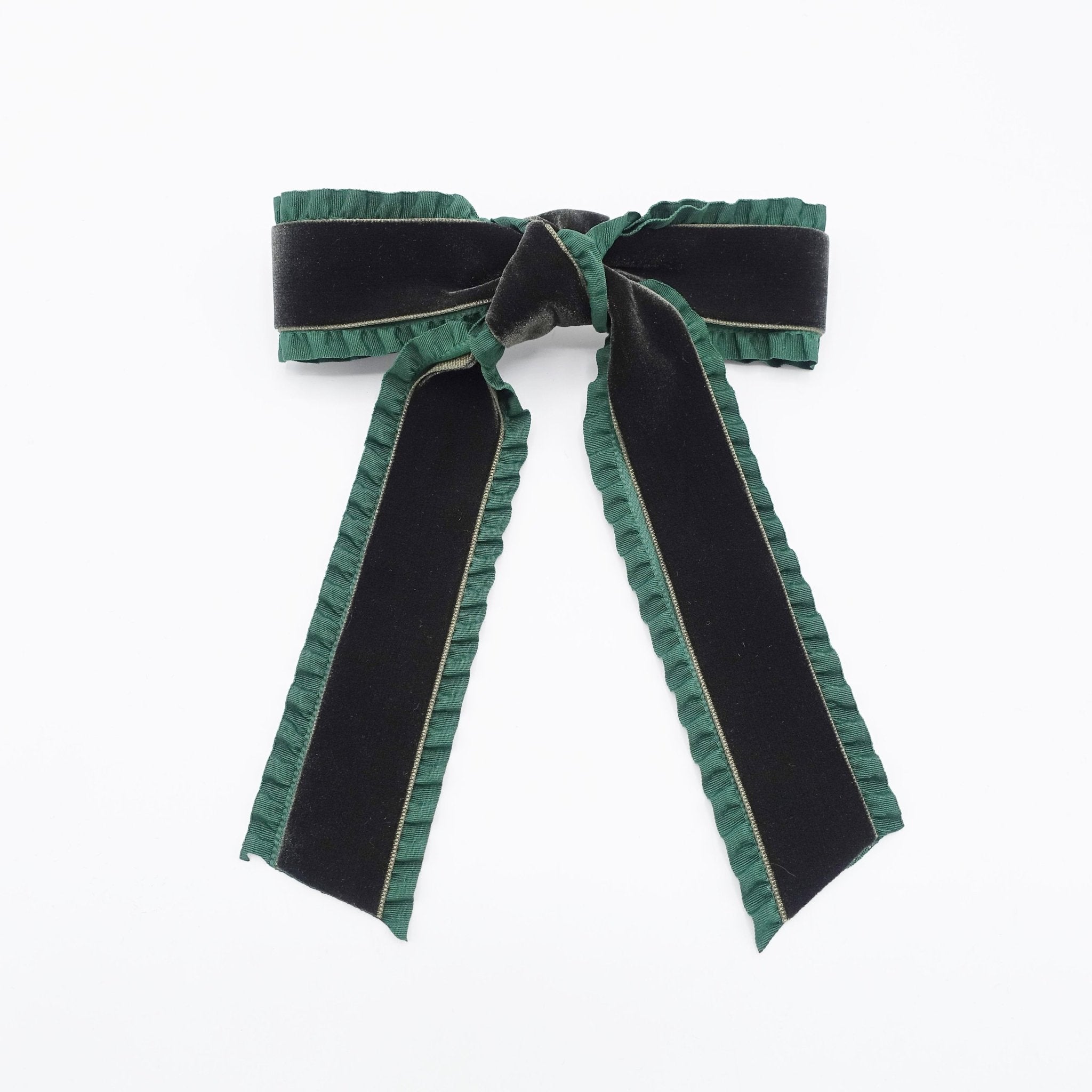 VeryShine Barrettes & Clips Green velvet layered frill hair bow Fall Winter hair accessory for women