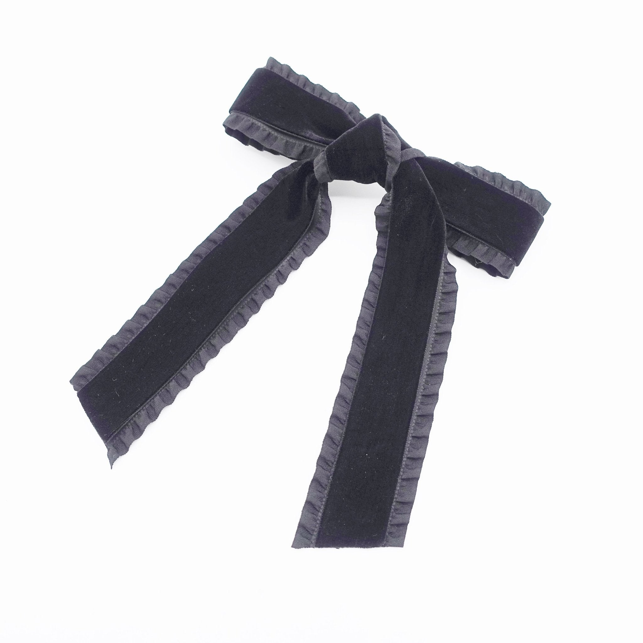 VeryShine Barrettes & Clips Black velvet layered frill hair bow Fall Winter hair accessory for women