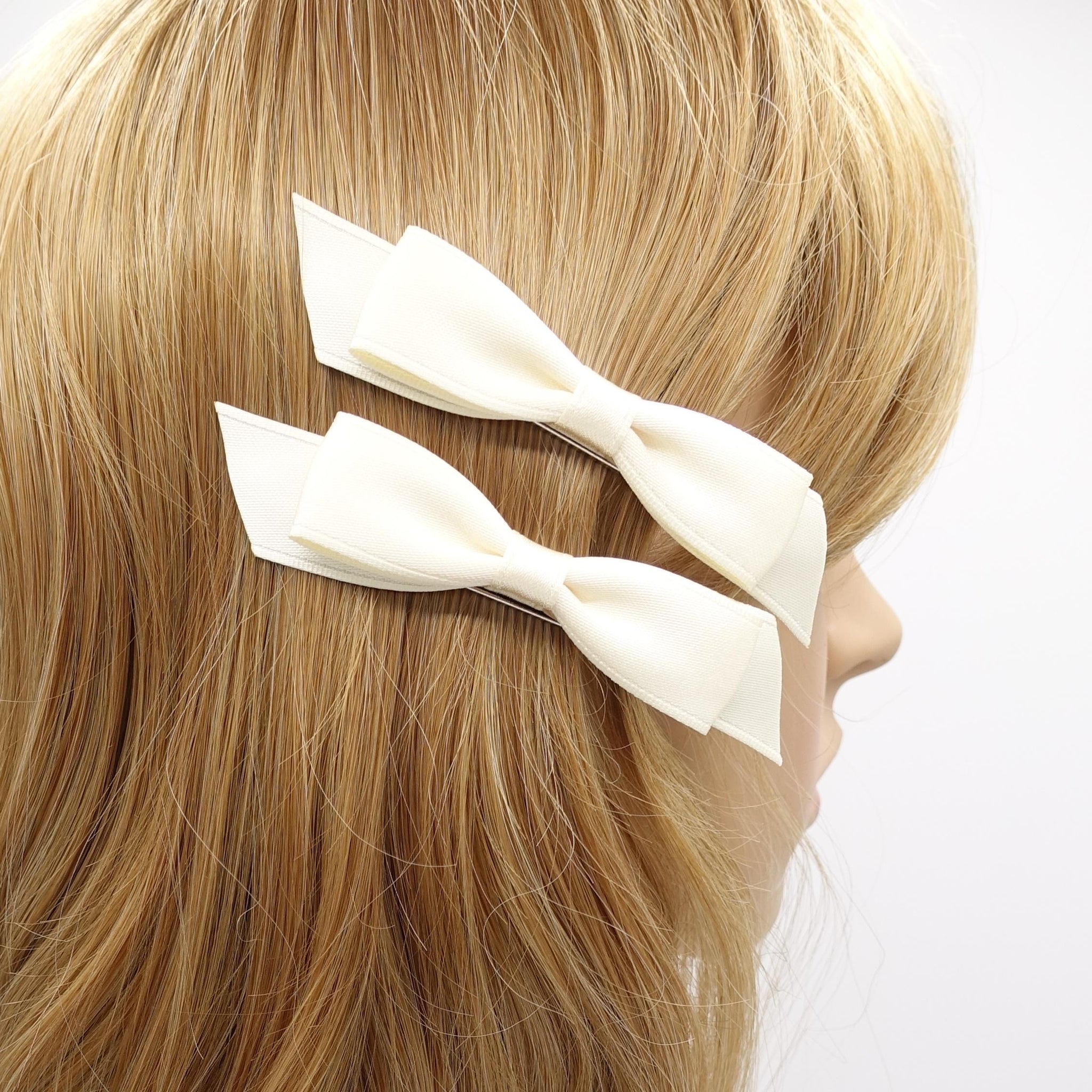 veryshine.com Hair Clip White satin bow set, small hair bow, satin bow for women