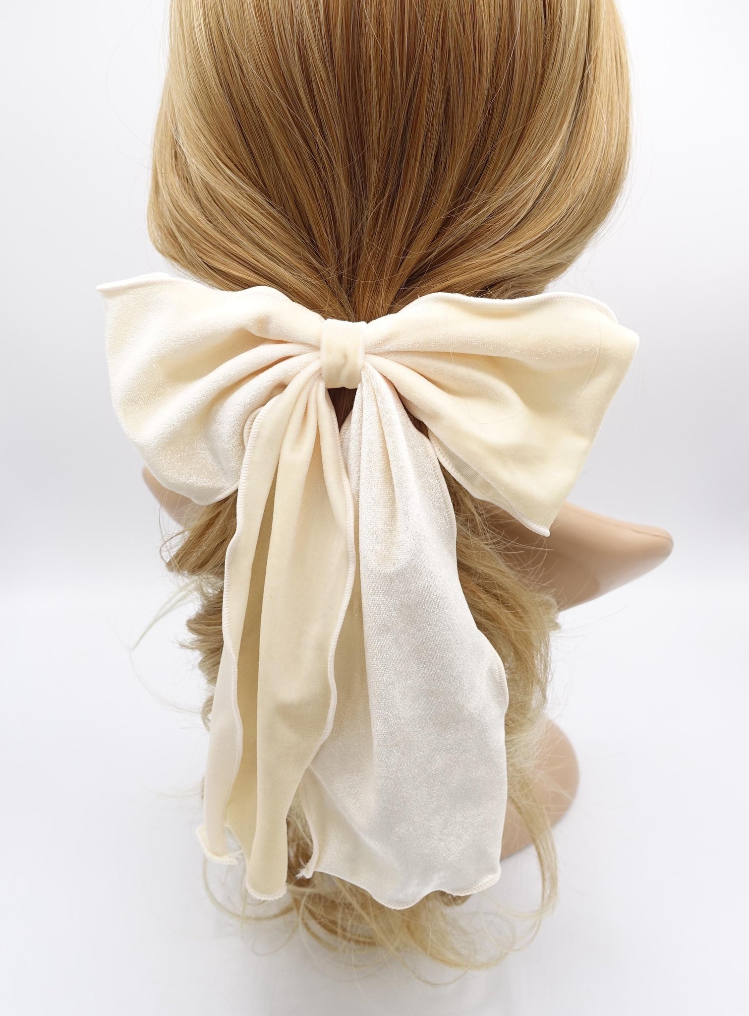 veryshine.com Barrette (Bow) Cream white velvet lettuce hem layered hair bow for women