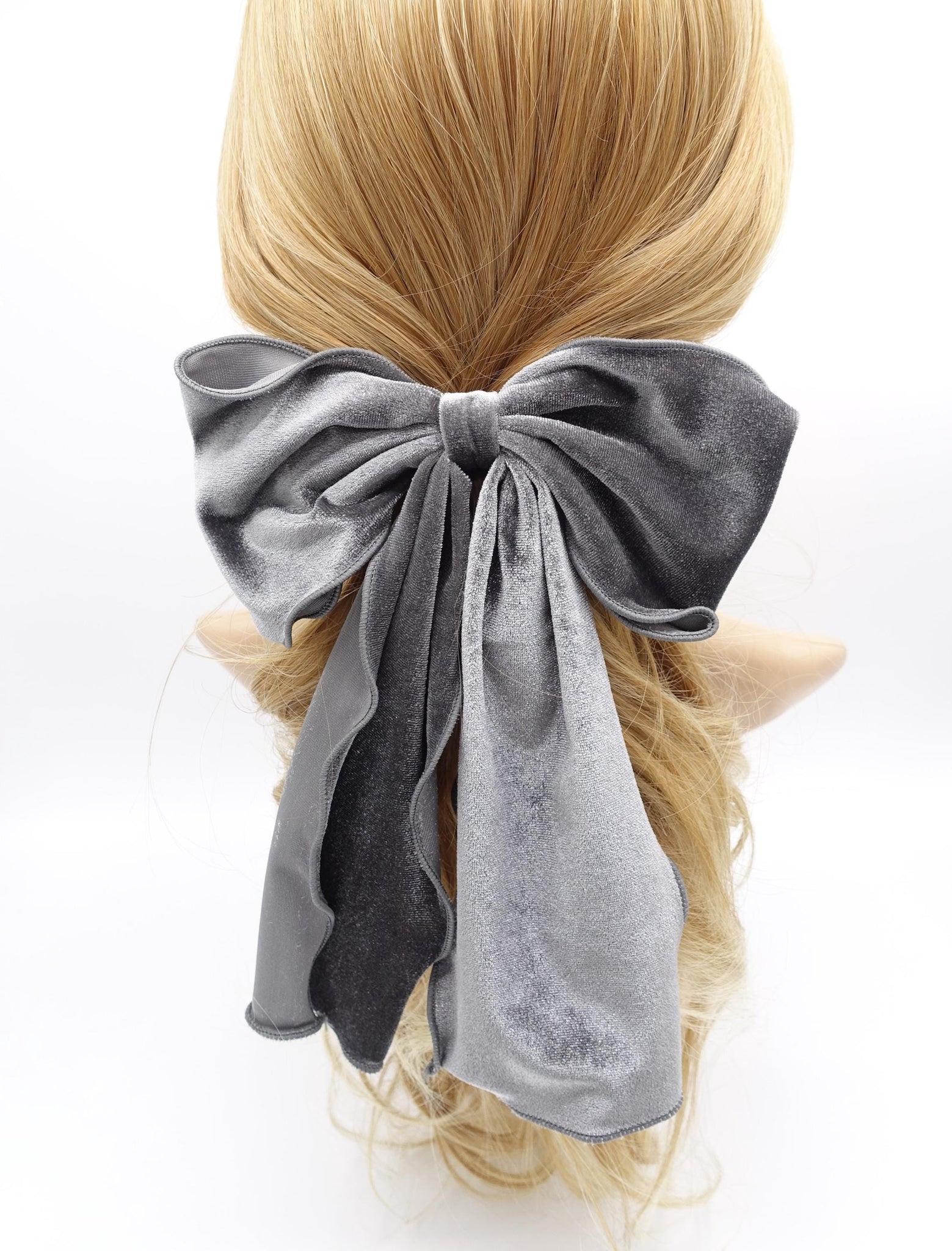 veryshine.com Barrette (Bow) Gray velvet lettuce hem layered hair bow for women